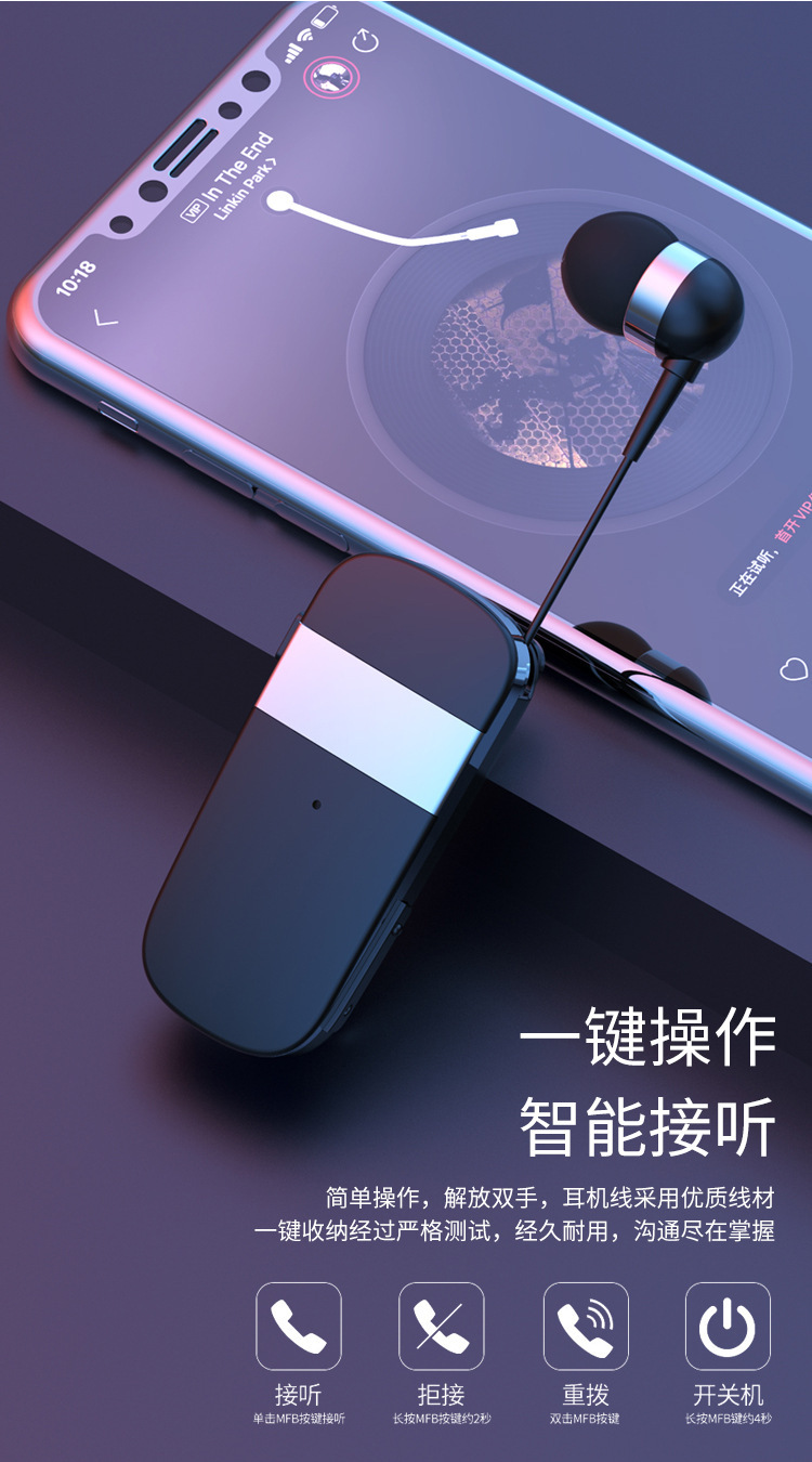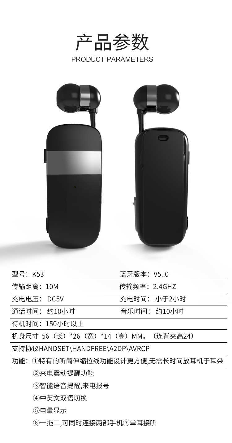 K53 Lavalier 무선 모노 블루투스 헤드셋 텔레스코픽 플레이 10 시간 비즈니스 스포츠 테이크 아웃 익스프레스 라이드