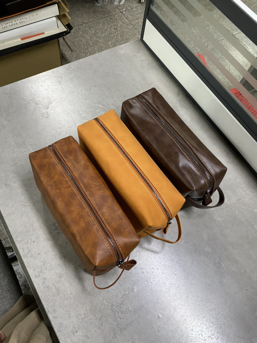빈티지 미친 말 패턴 가죽 화장품 가방 야외 대용량 휴대용 보관 가방 휴대용 남성용 여행 세척 가방