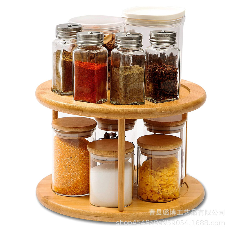 크로스 보더 대나무 라운드 더블 레이어 스토리지 랙 회전식 화장품 보관 및 배열 랙 주방 향신료 랙 스토리지 랙스토어 가기