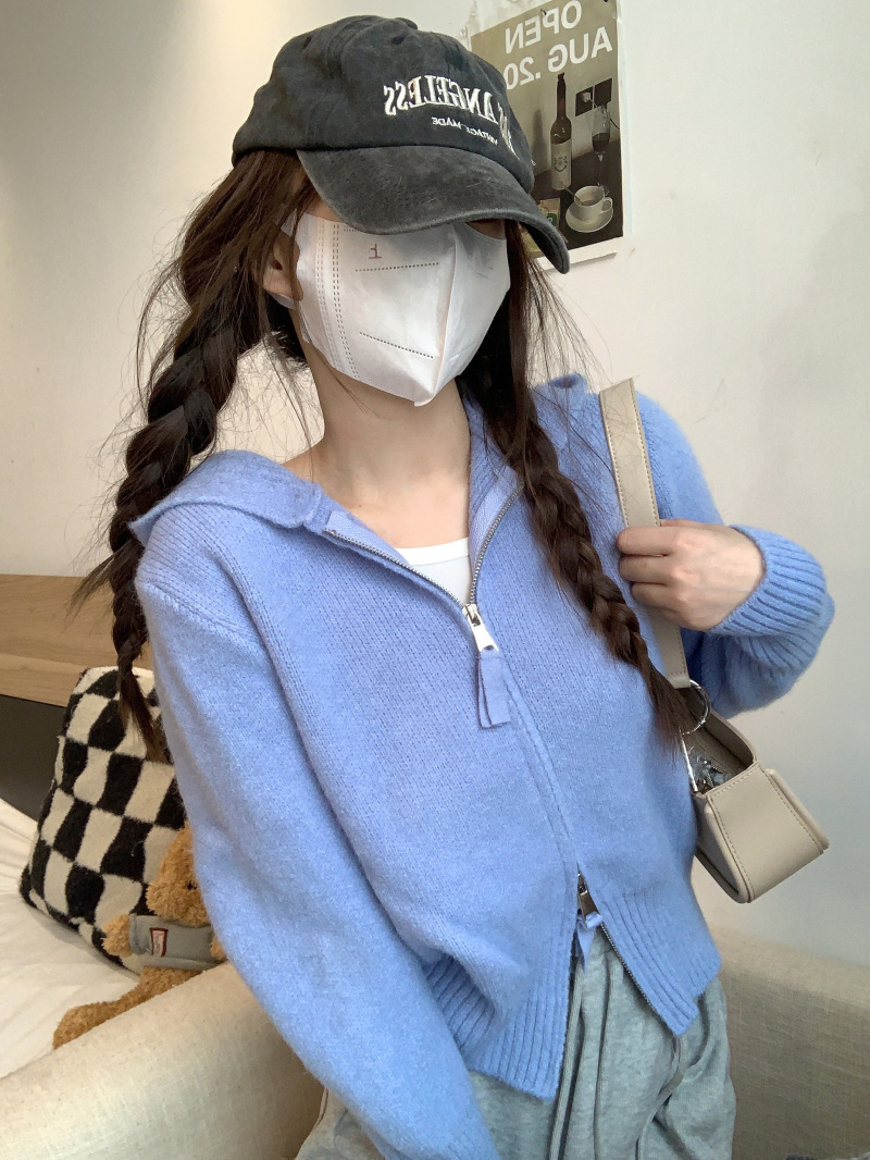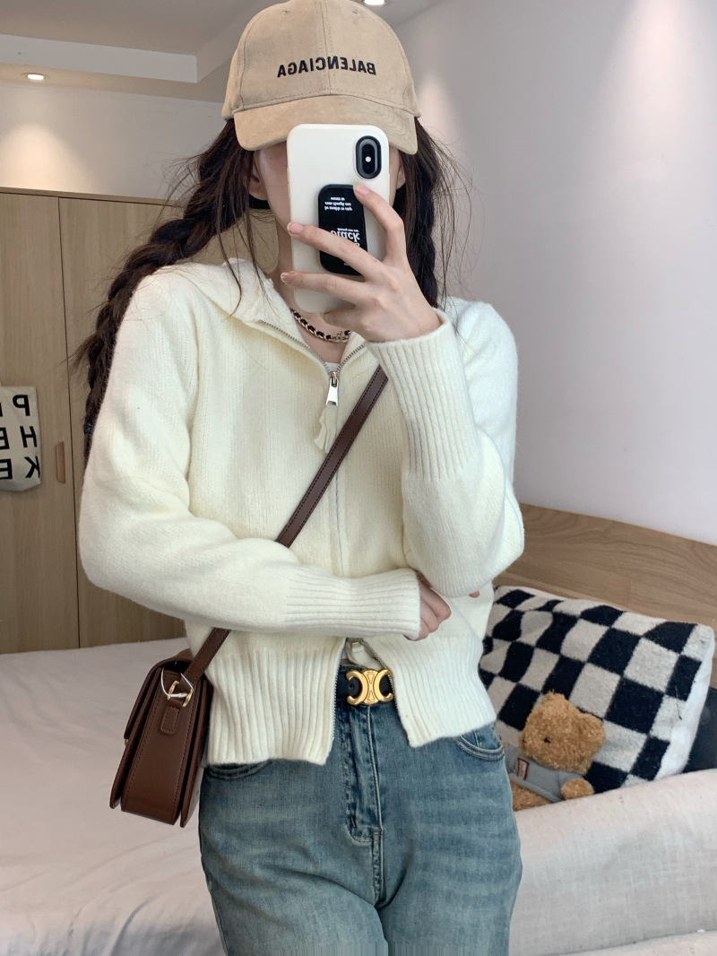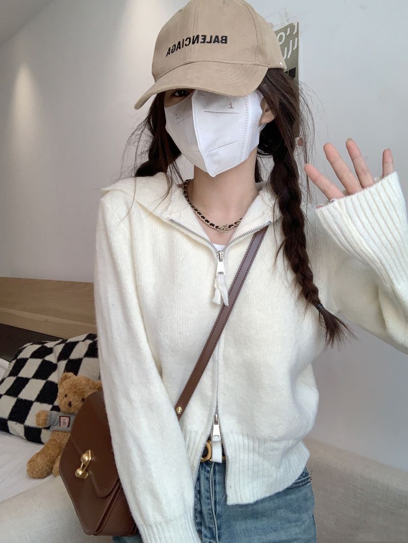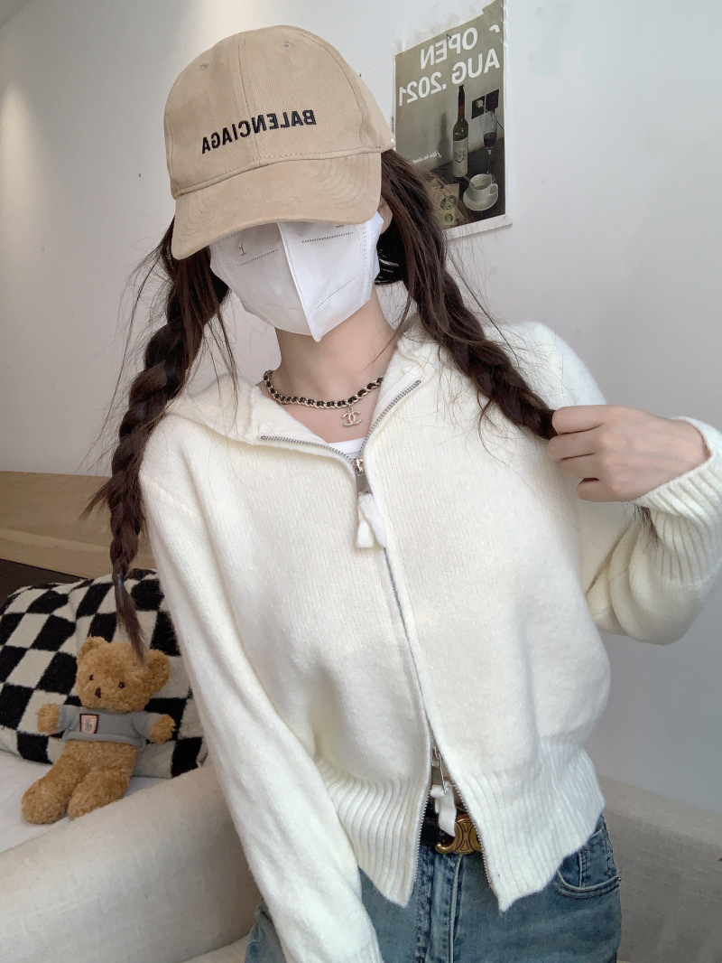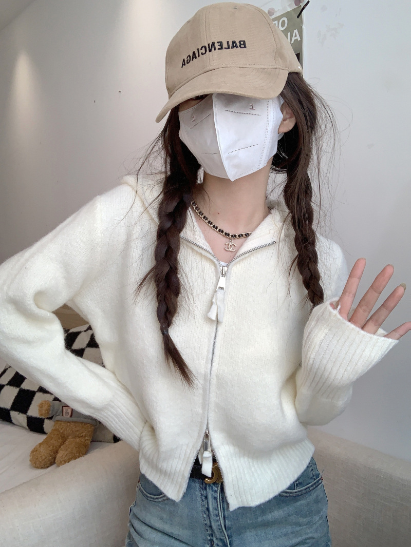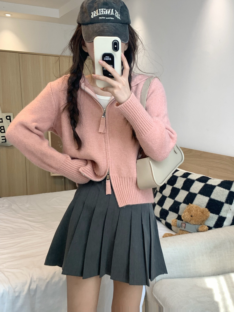 순수한 매력의 회색 긴팔 니트 가디건 여성용 가을 2025 신상 더블 지퍼 슬림핏 숏탑스토어 가기