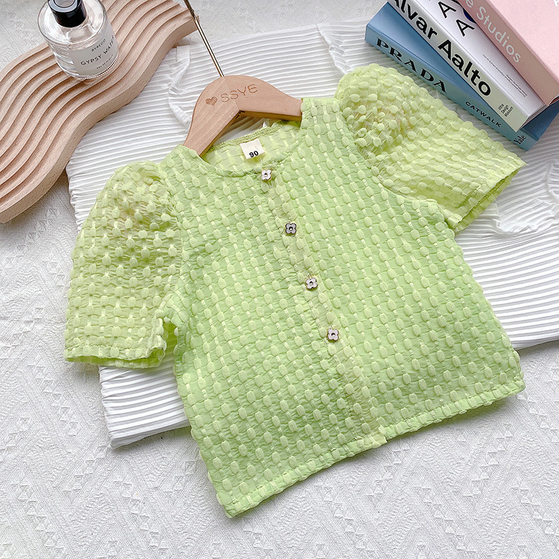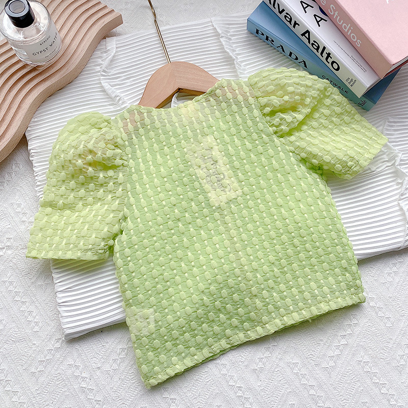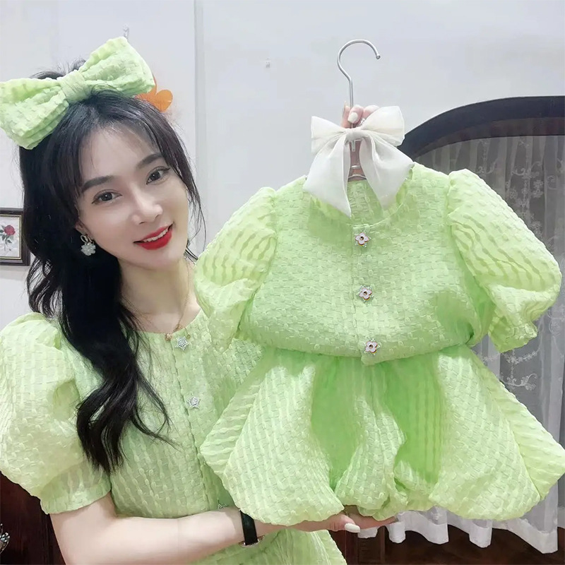 여아 여름 투피스 2023 새로운 유행 녹색 아기 여아 단색 반팔 반바지 세트 여름 옷 세트스토어 가기