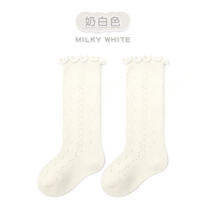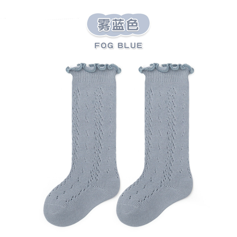 25수 얇은 면 대형 메쉬 하이탑 공주 양말 유아용 아기 양말 중소형 어린이 양말 이동식 레이스 장식 중간 길이 양말