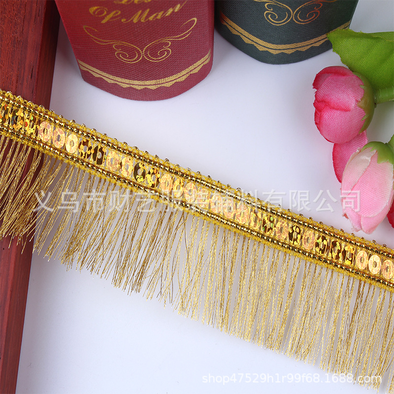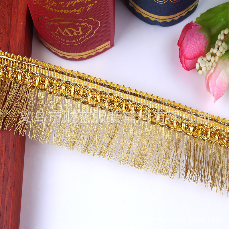 공장 도매 프랑스 스타일 스카프 액세서리 금은사 프린지 장식 커튼 의류 부자재 금색 프린지 레이스스토어 가기