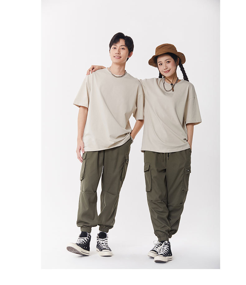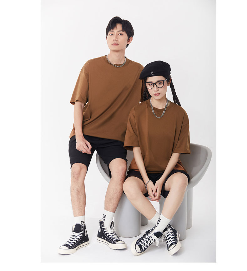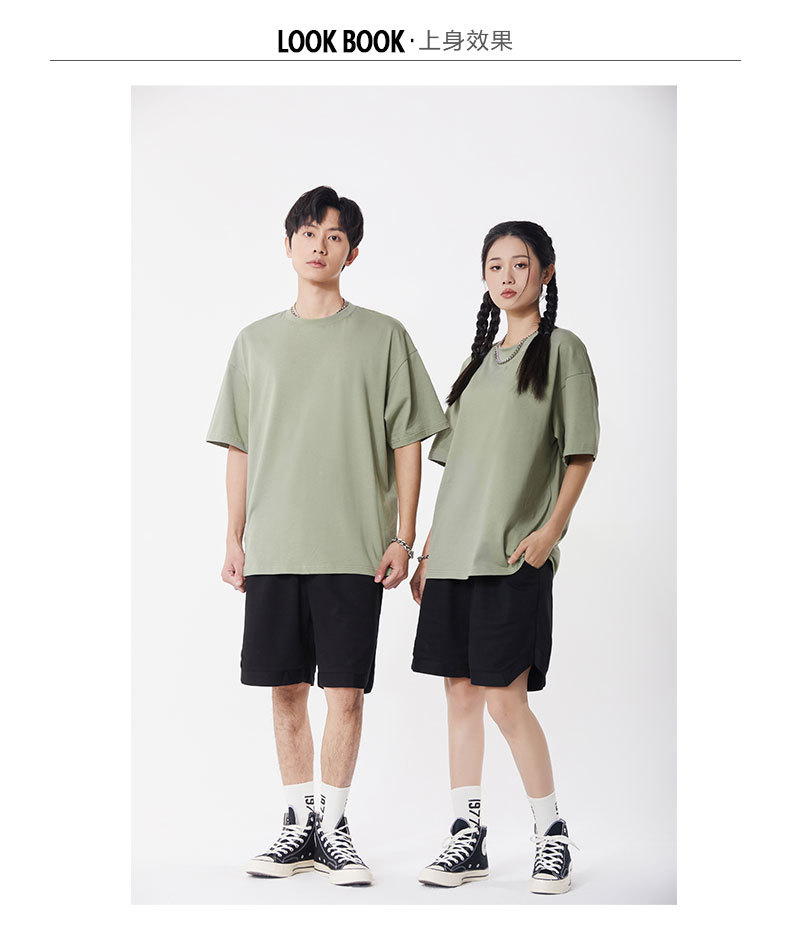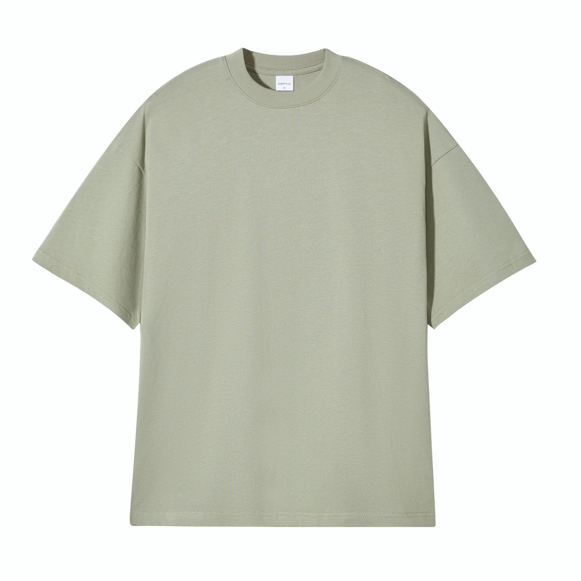 봄과 여름 새로운 245g 헤비 웨이트 더블 원사 코튼 숄더 드롭 반팔 여성 일본 패션 브랜드 느슨한 대형 버전 반소매 티셔츠