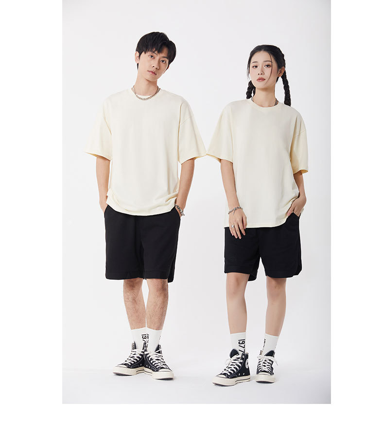 봄과 여름 새로운 245g 헤비 웨이트 더블 원사 코튼 숄더 드롭 반팔 여성 일본 패션 브랜드 느슨한 대형 버전 반소매 티셔츠스토어 가기