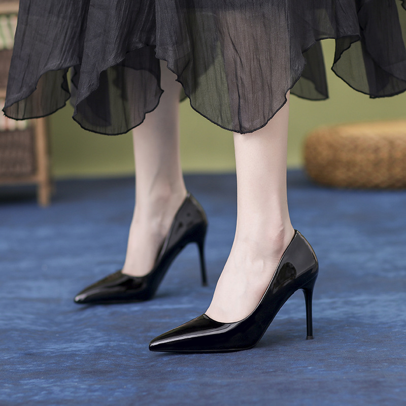 통근 블랙 하이힐 여성용 봄과 가을 새로운 뾰족한 모든 경기 우아한 얕은 입 전문 누드 얇은 굽 OL 신발스토어 가기