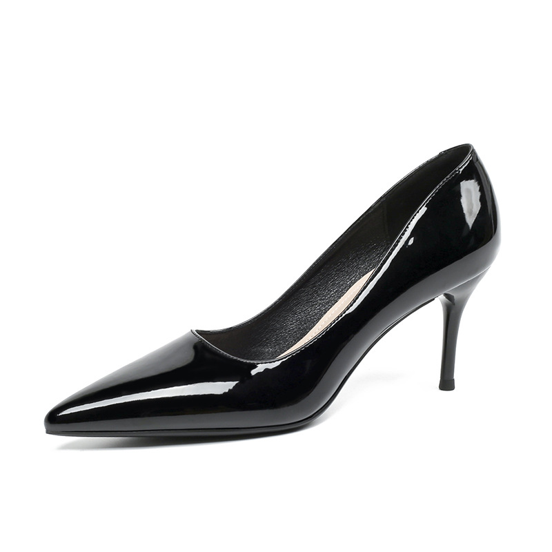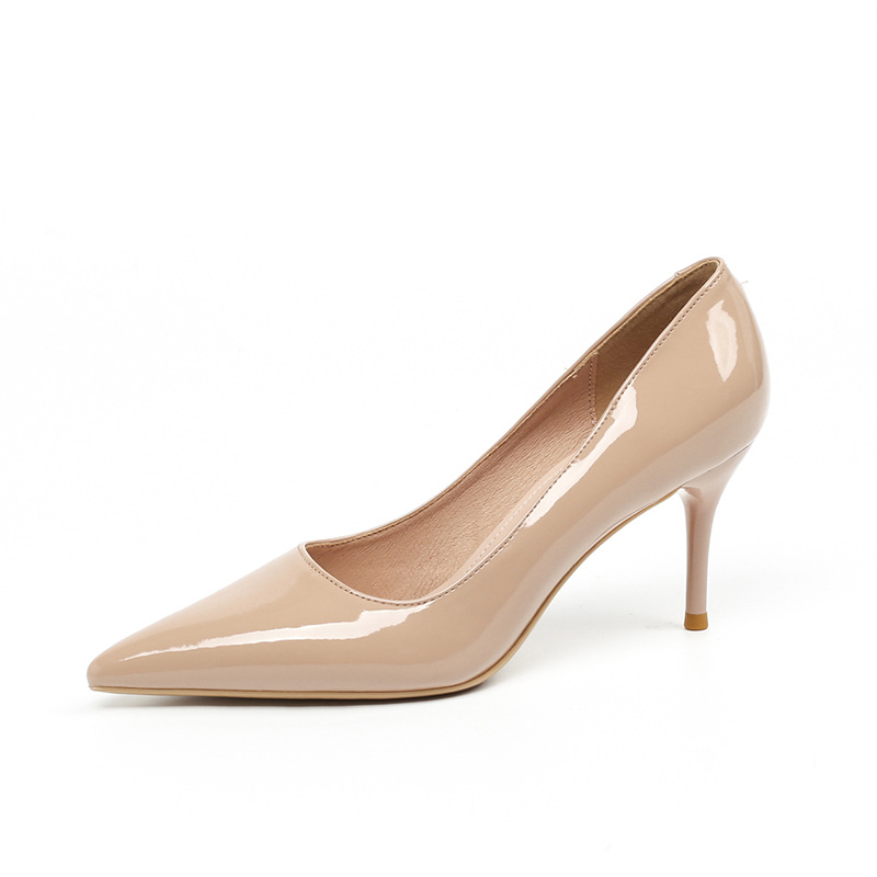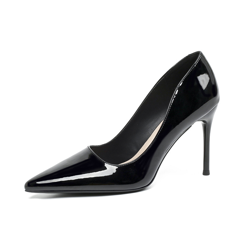 통근 블랙 하이힐 여성용 봄과 가을 새로운 뾰족한 모든 경기 우아한 얕은 입 전문 누드 얇은 굽 OL 신발
