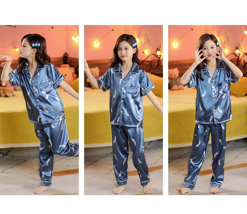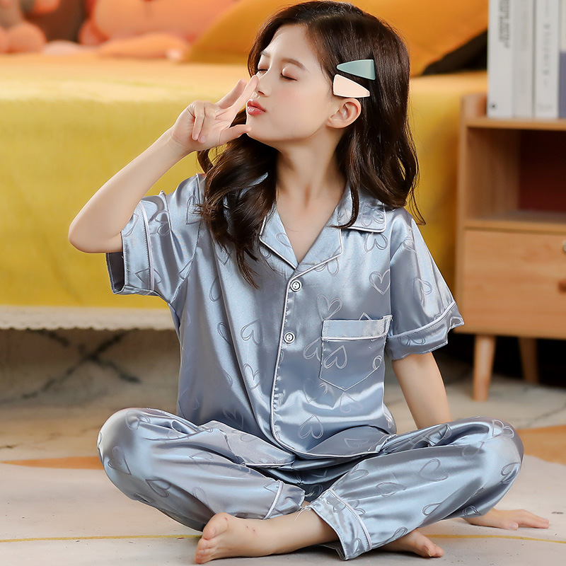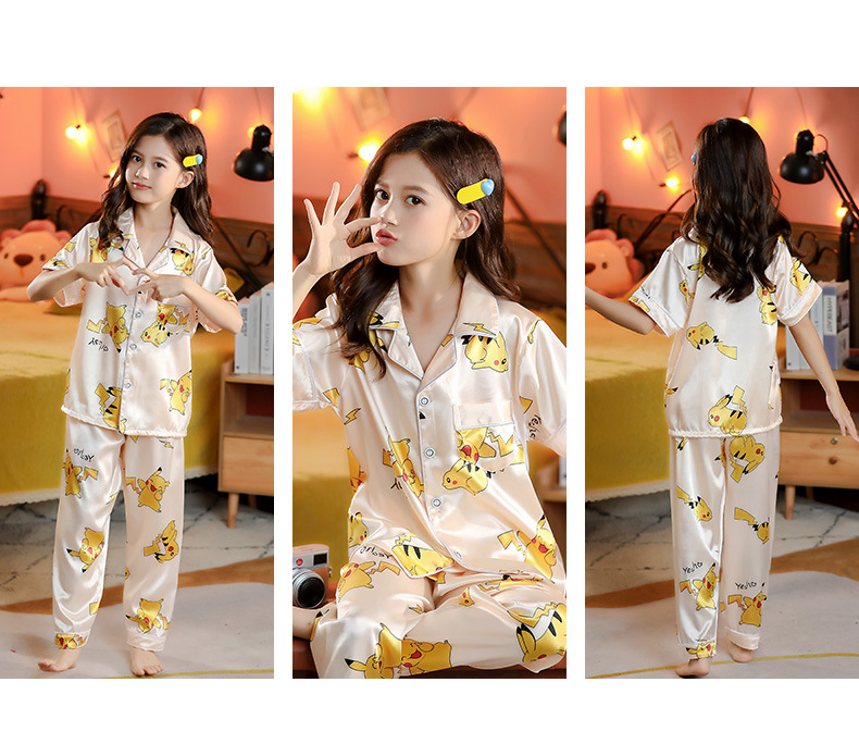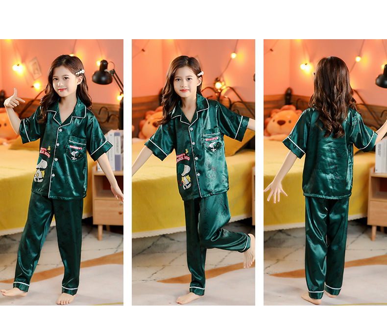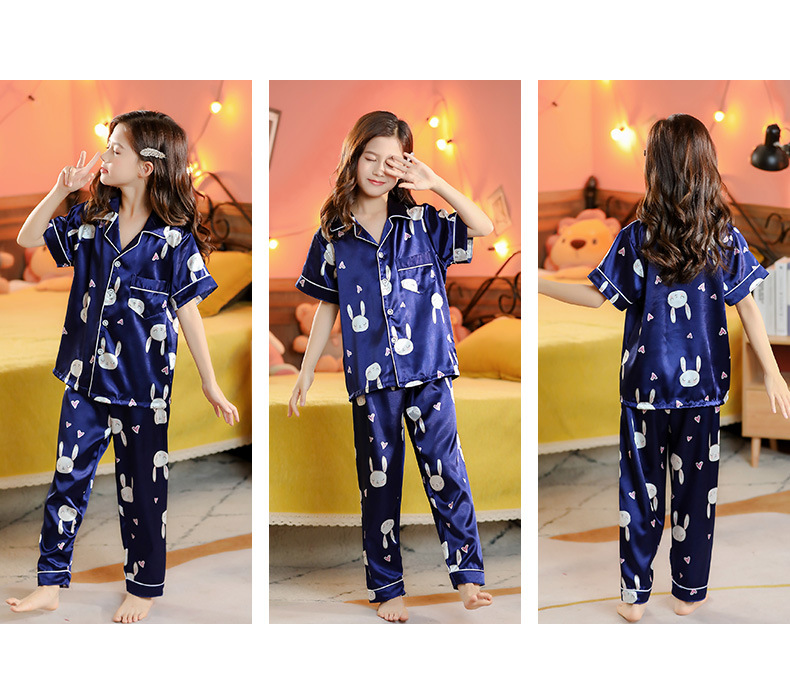 봄 여름 잠옷 여아 반팔 긴바지 가디건 아이스 실크 얇은 스타일 엄마와 딸 홈웨어 만화 부모 자식 의상