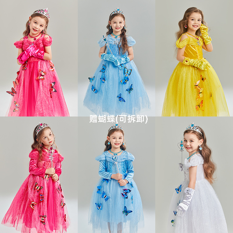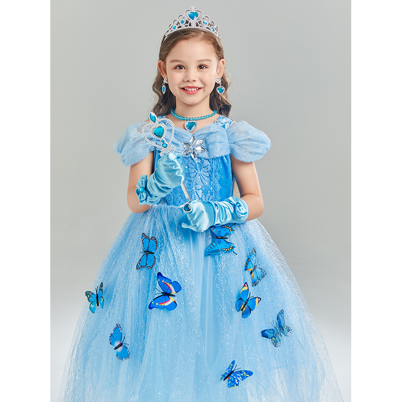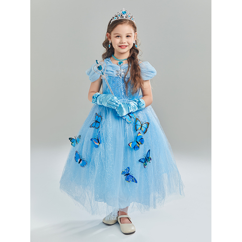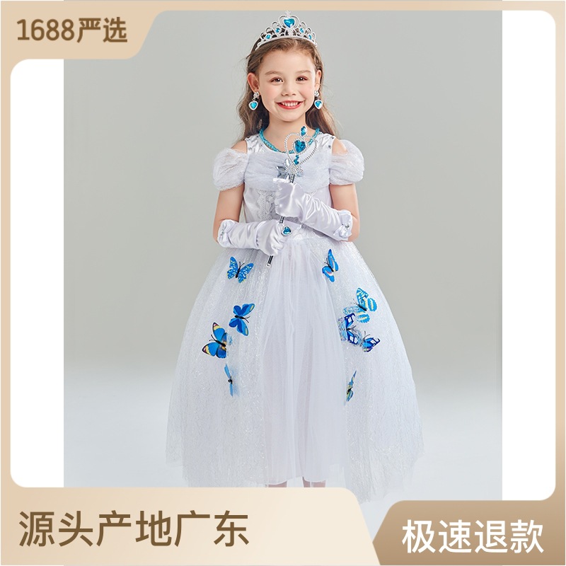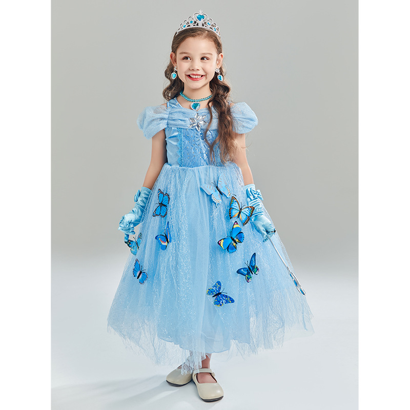 대외 무역 소녀 신데렐라 공주 치마 도매 반팔 냉동 아이샤 원피스 성능 의류 나비 거즈 스커트