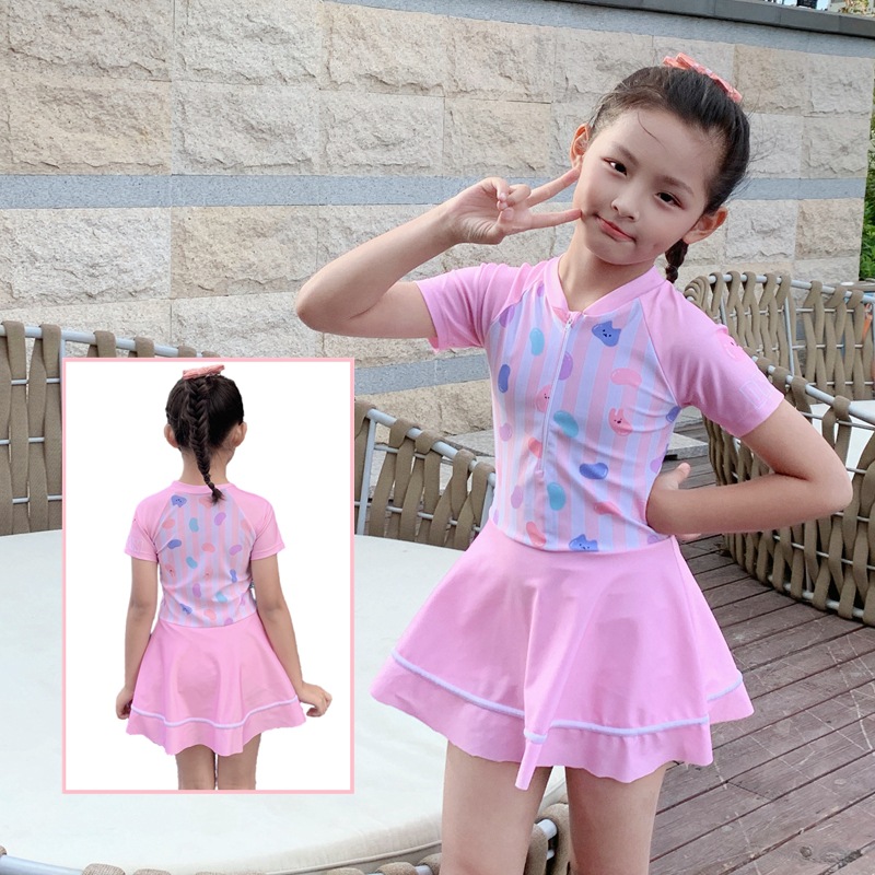 어린이 수영복 여아 중대형 어린이 원피스 수영복 학생 소녀 온천 수영복 꽃무늬 작은 공주스토어 가기