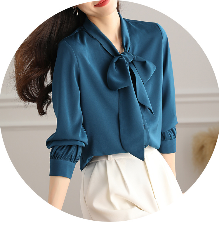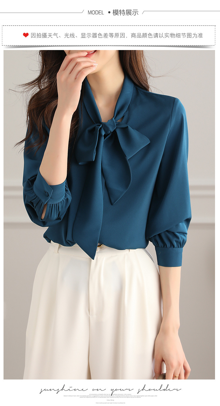 2025년 신상 리본 셔츠 여성용 긴팔 흰색 상의 고급 패션 리본 쉬폰 흰색 셔츠 여성용스토어 가기