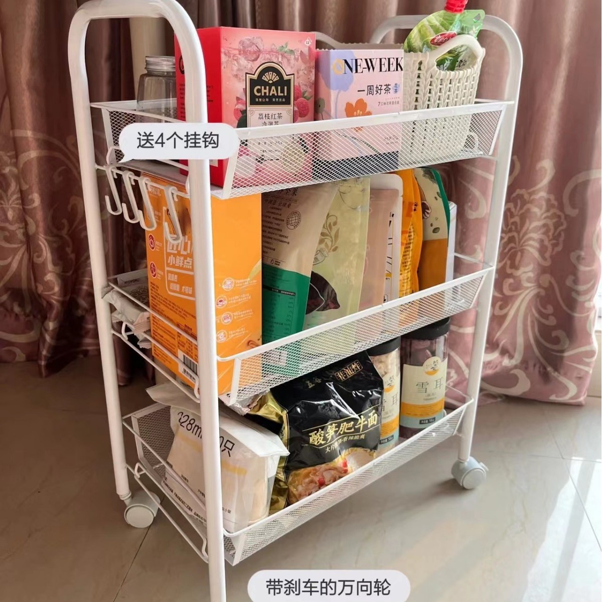 Lasker 카트 주방 스토리지 랙 야채 바구니 스토리지 랙 회전 스토리지 랙 바닥 트롤리 금속 레이어스토어 가기