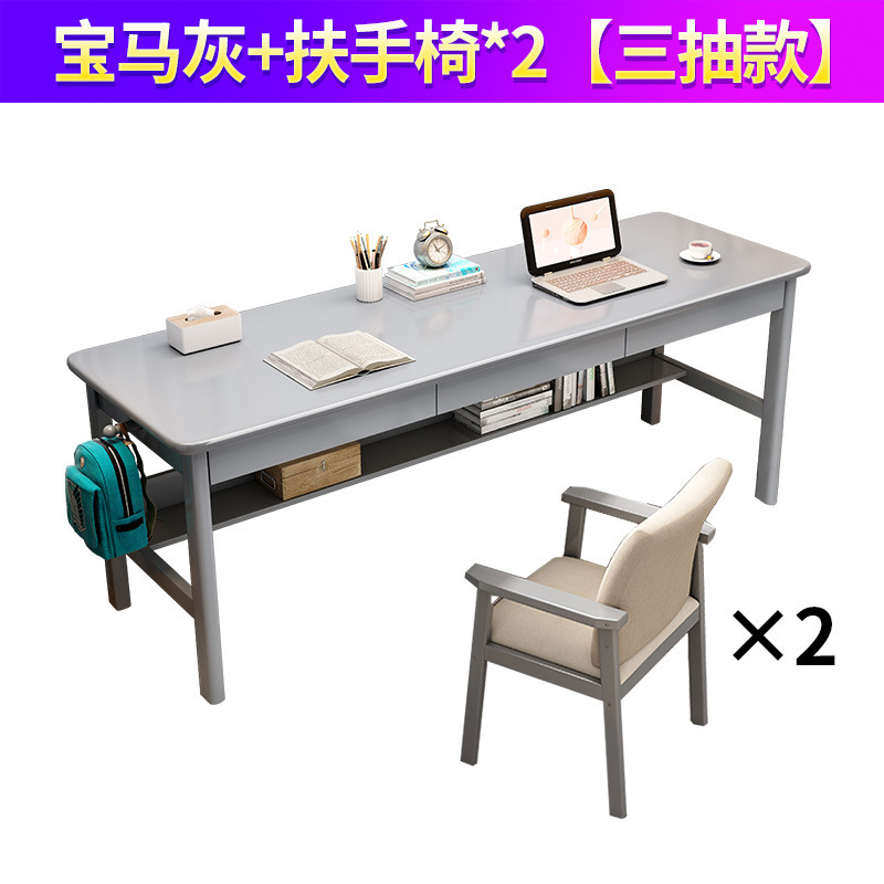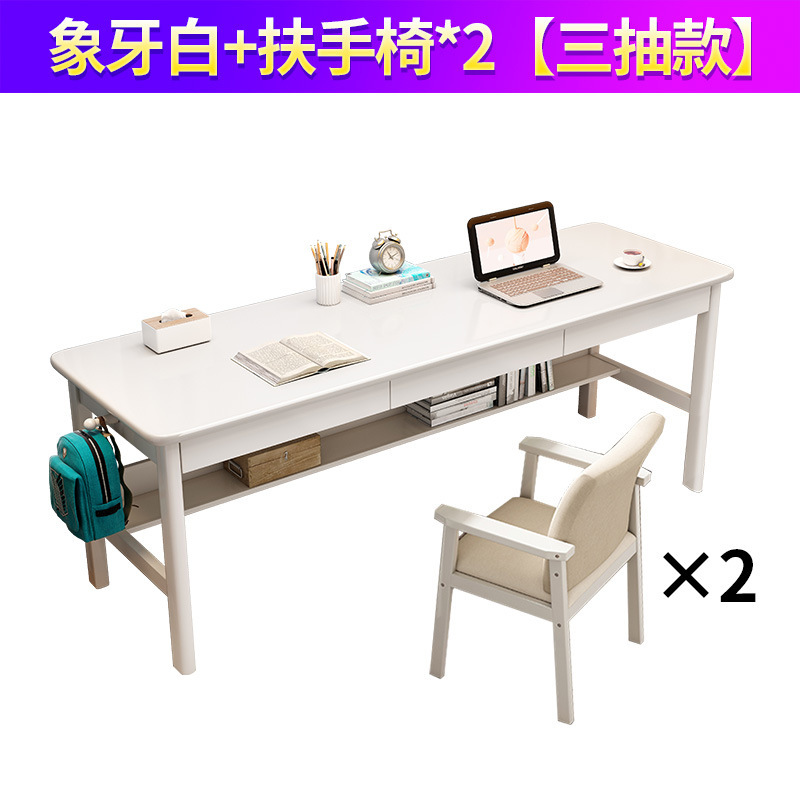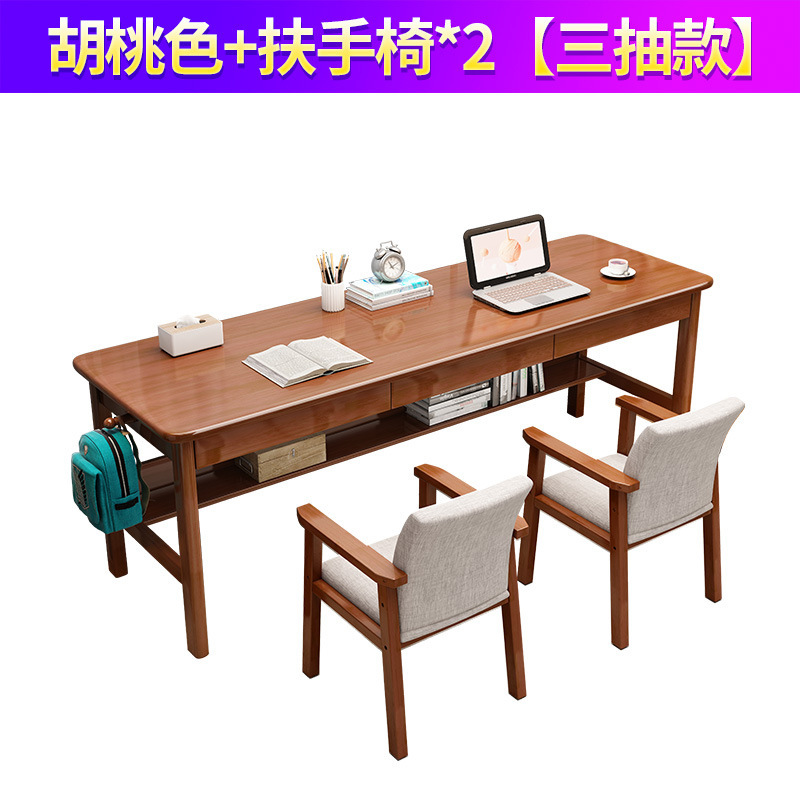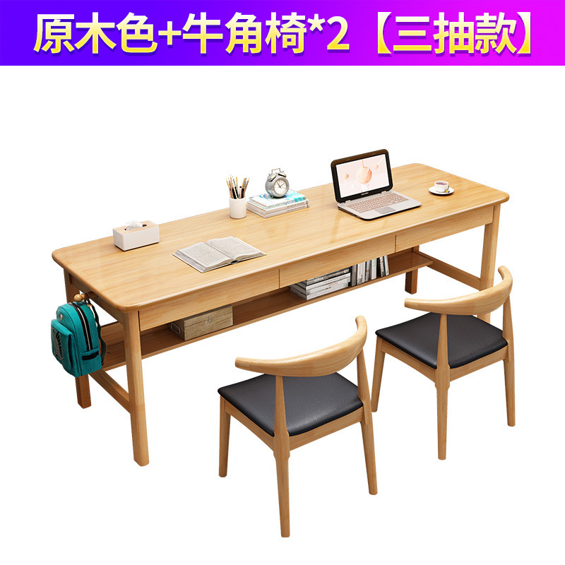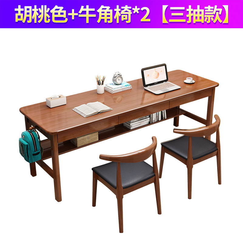 단단한 나무 더블 테이블 홈 학생 학습 쓰기 책상 침실 긴 사무실 컴퓨터 책상 경적 의자 도매