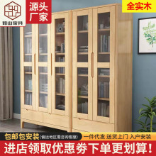 北欧全实木书柜五门六门现代简约书橱玻璃门展示书架落地置物柜子