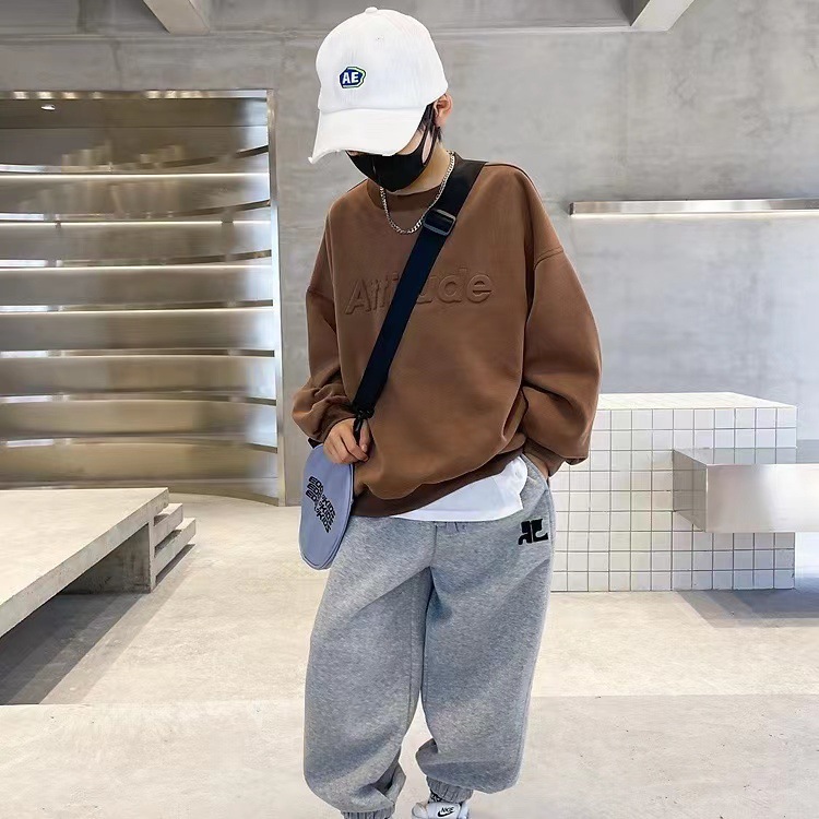 2024 년 어린이 봄과 가을 얇은 긴팔 스웨트 셔츠 바지 세트 2 종 세트 중 · 대형 어린이 학생 루즈 레저 스포츠스토어 가기