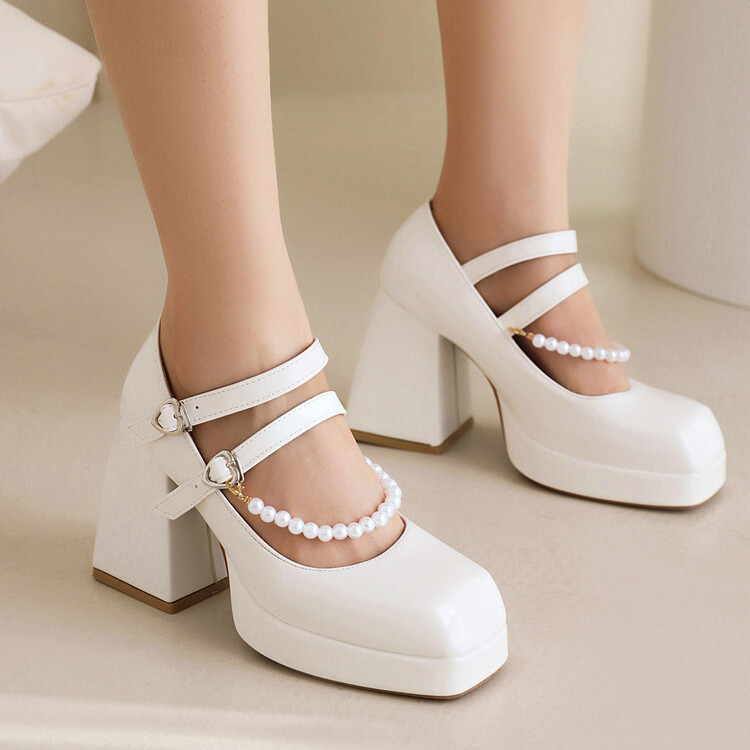 아마존 크로스 국경 대외 무역 플러스 사이즈 여성 신발 유럽과 미국 스퀘어 헤드 두꺼운 굽 신발 버클 페르시 메리 제인 여성 신발 새로운스토어 가기