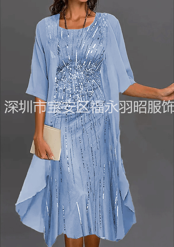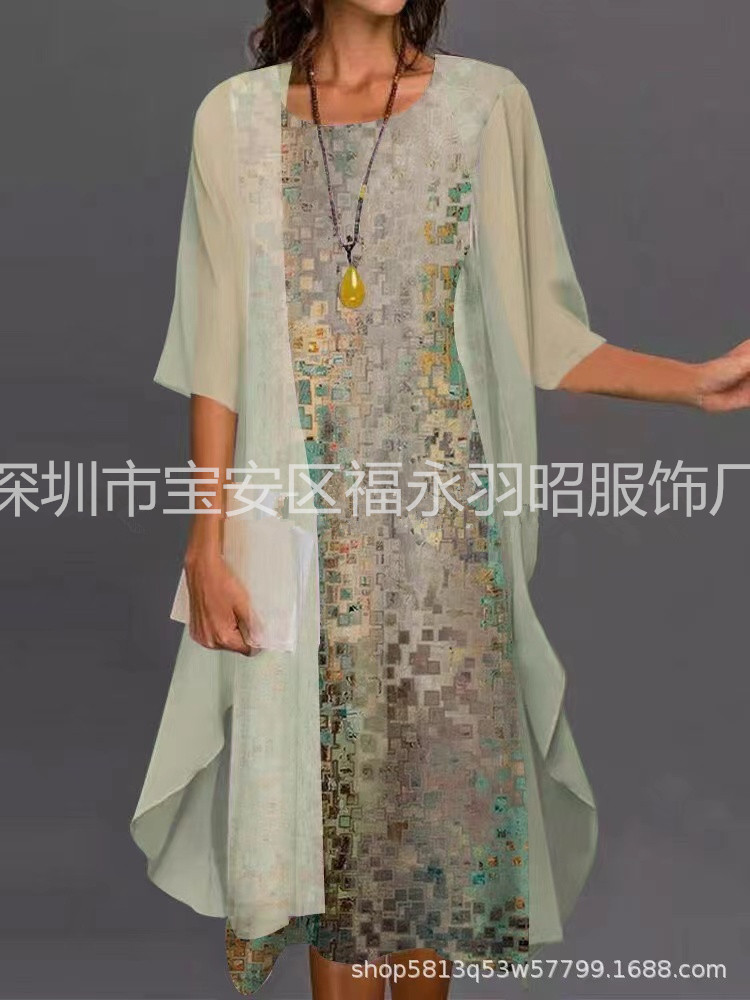 유럽과 미국 독립 역 아마존 소원 새로운 폭발 봄과 가을 패션 캐주얼 인쇄 쉬폰 원피스 투피스 세트스토어 가기