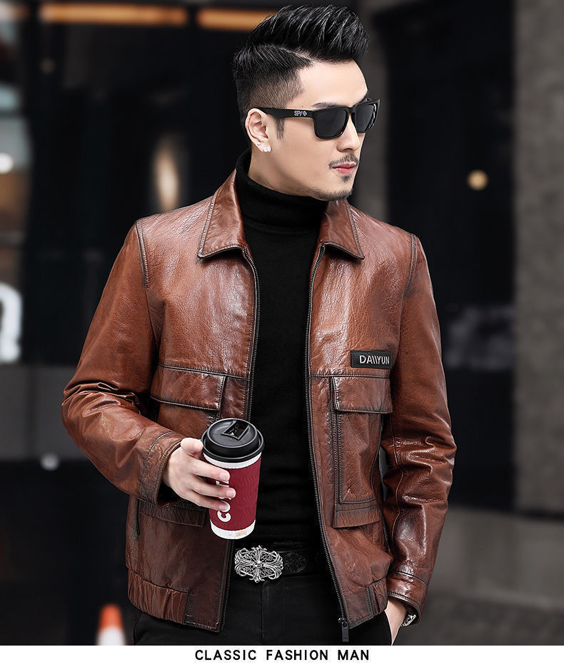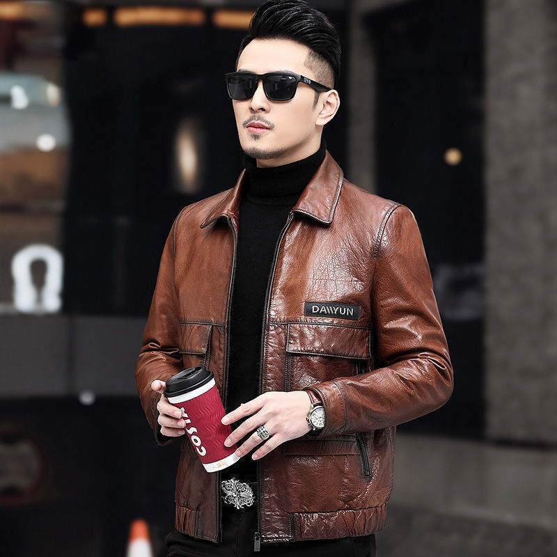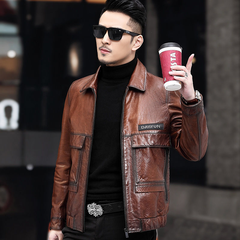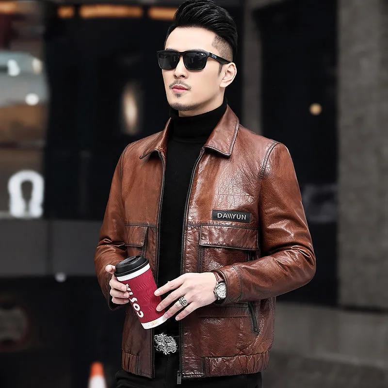 봄 가을 신상 허닝 가죽 자켓 남성용 짧은 슬림핏 얇은 라펠 가죽 자켓 남성용 가죽 의류 캐주얼 코트스토어 가기