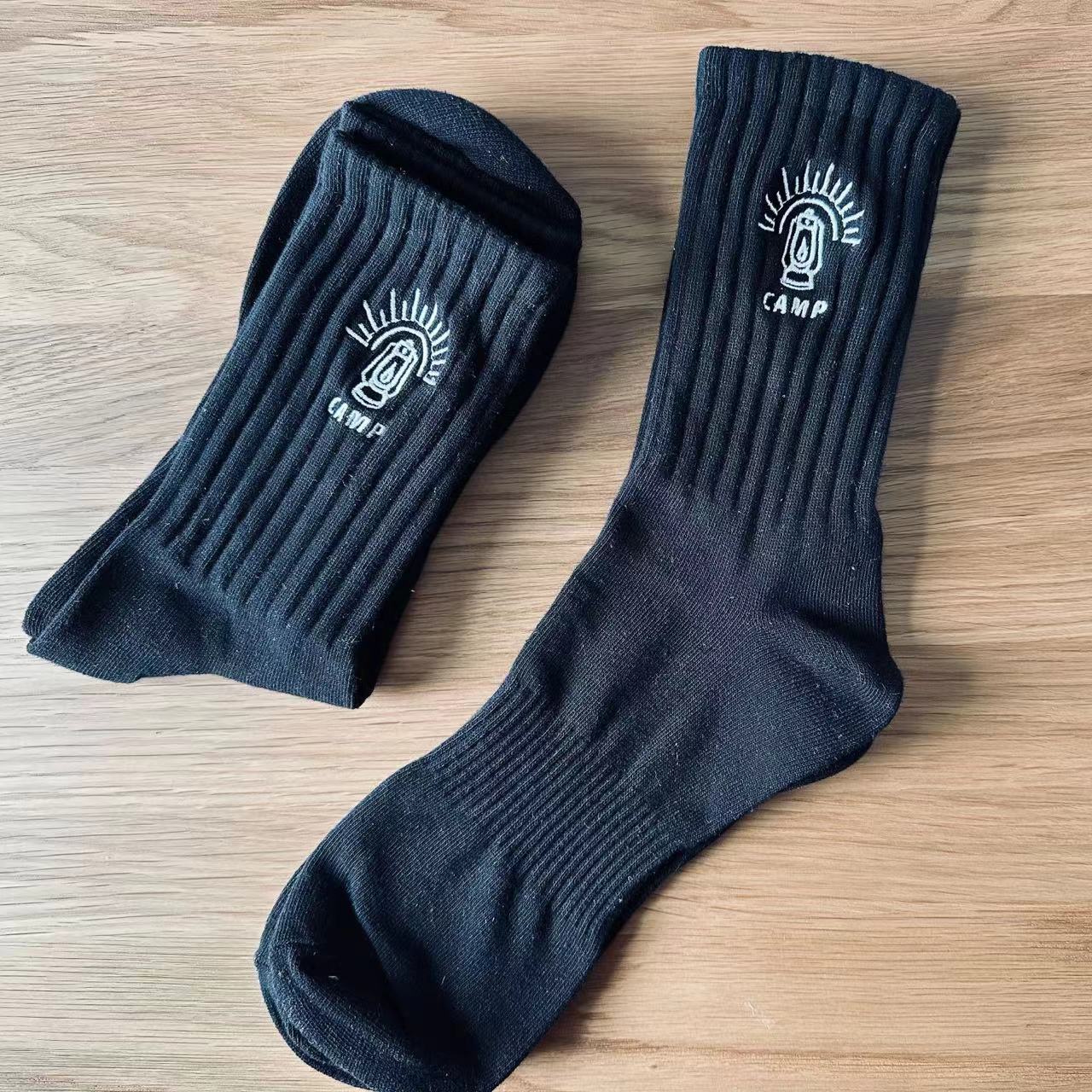 주니아 오리지널 아웃도어 하이킹 등산 워크웨어 스타일 캠핑 오일램프 자수 중목 양말 트렌디 레터링 면 양말