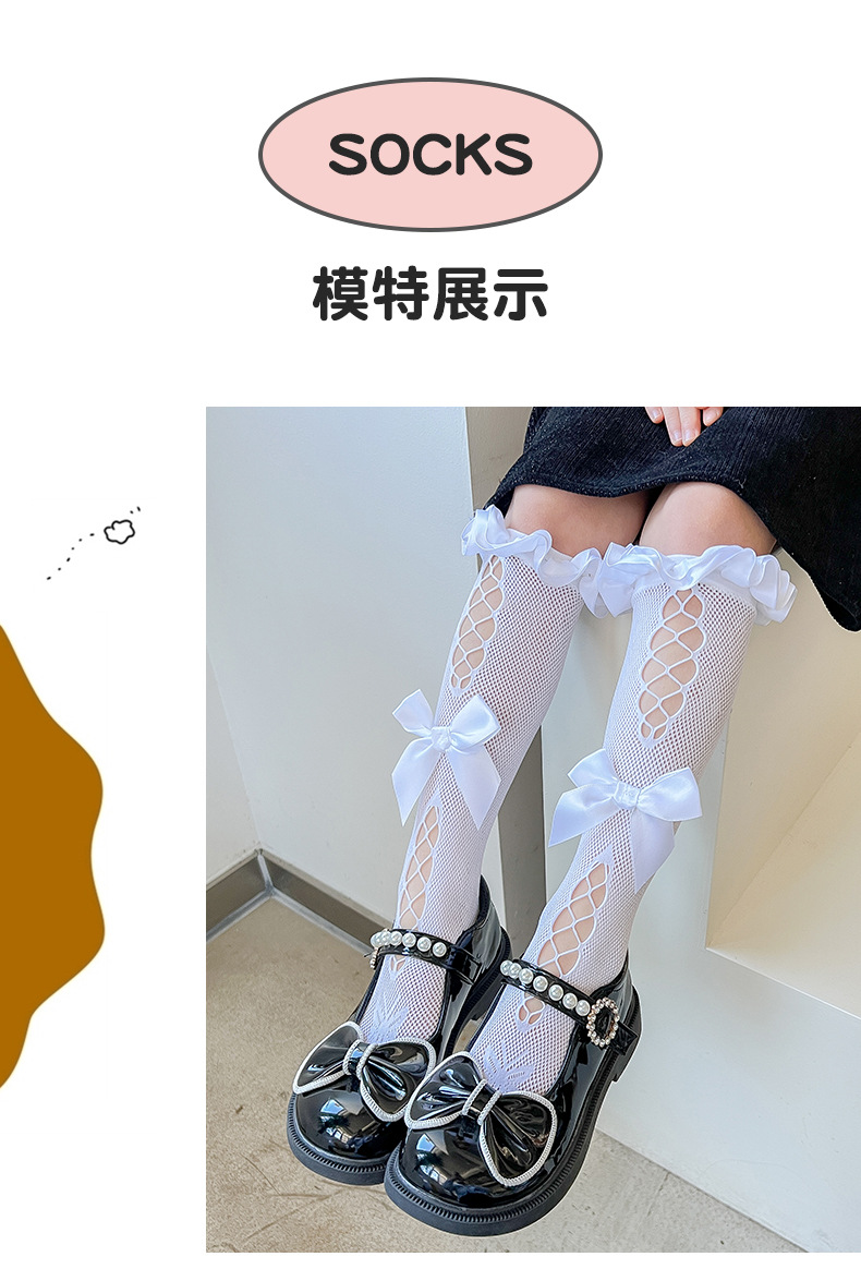 어린이 로리타 중공 송아지 양말 소녀 리본 흑백 레이스 활 스타킹 봄과 여름 얇은스토어 가기