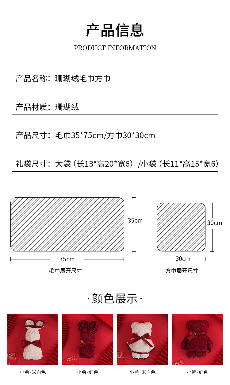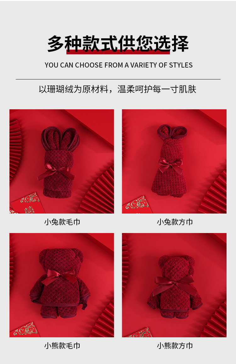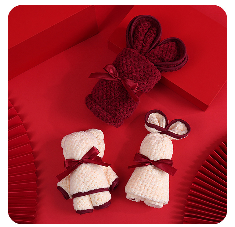 손 선물 타월 토끼 곰 산호 양털 사각 수건 결혼 선물 결혼식 신부 들러리 선물 타월 도매