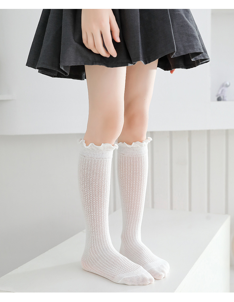 여자 양말 여름 면화 울트라 얇은 소녀 어린이 스타킹 레이스 중공 메쉬 튜브 양말