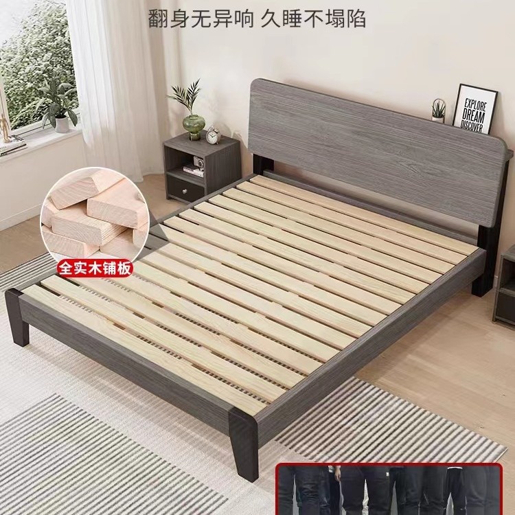 원목 침대 원목 침대 1.8m 심플한 디자인 1.5m 임대용 싱글 침대 프레임 가정용 마스터 침실 더블 침대 도매스토어 가기