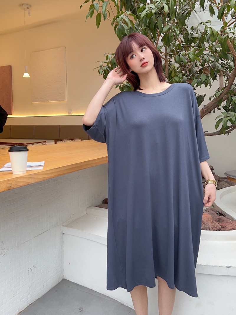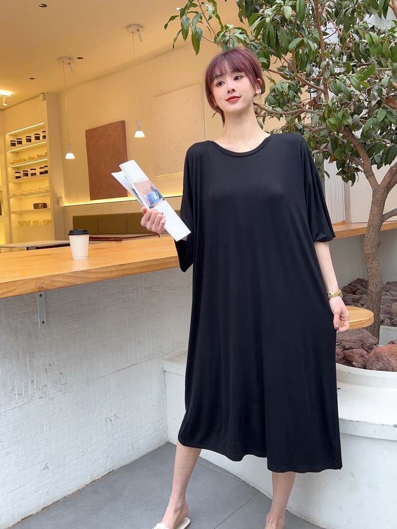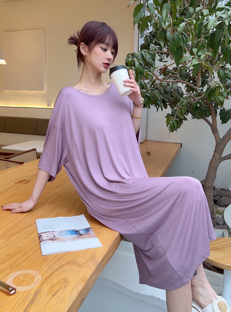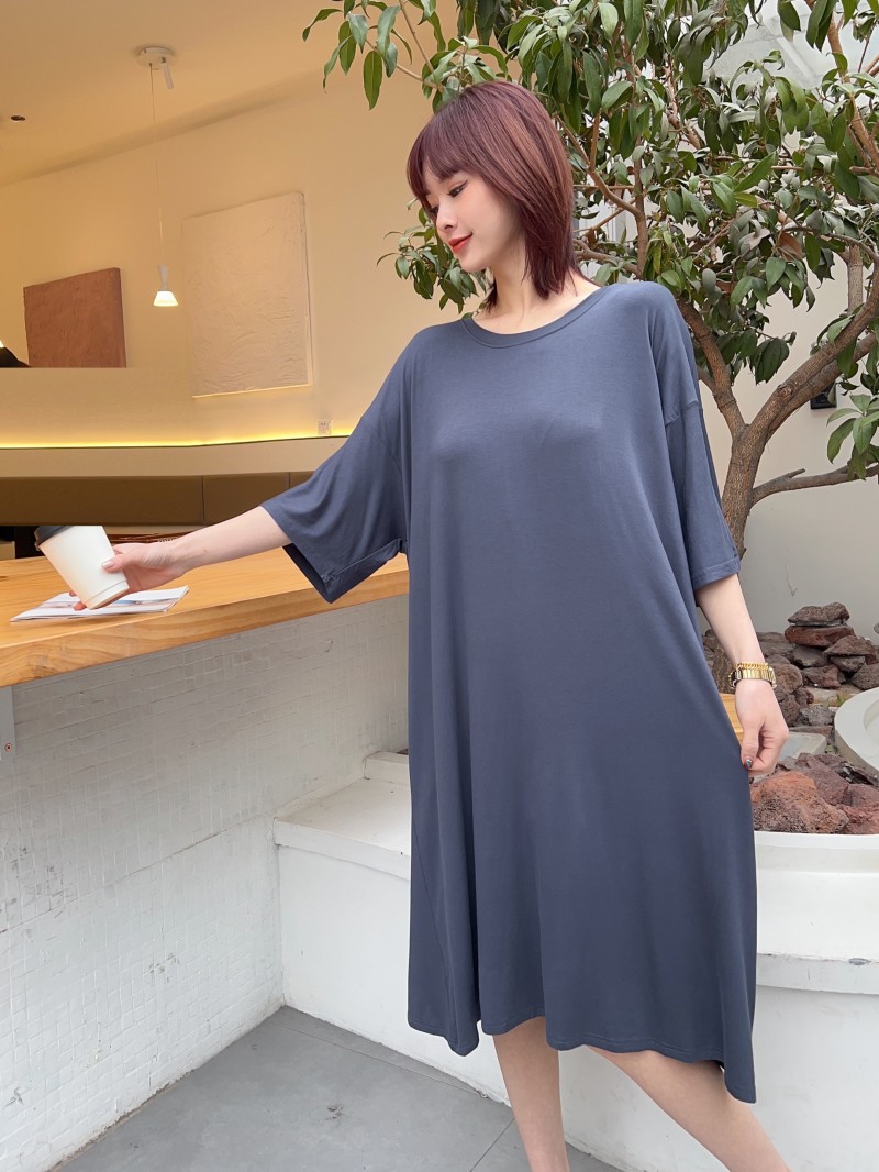 모달 파자마 여성의 봄과 가을 가슴 패드 반소매 고급 감각 임산부 나이트가운 순수한 욕망 스타일 홈 의류 원피스스토어 가기