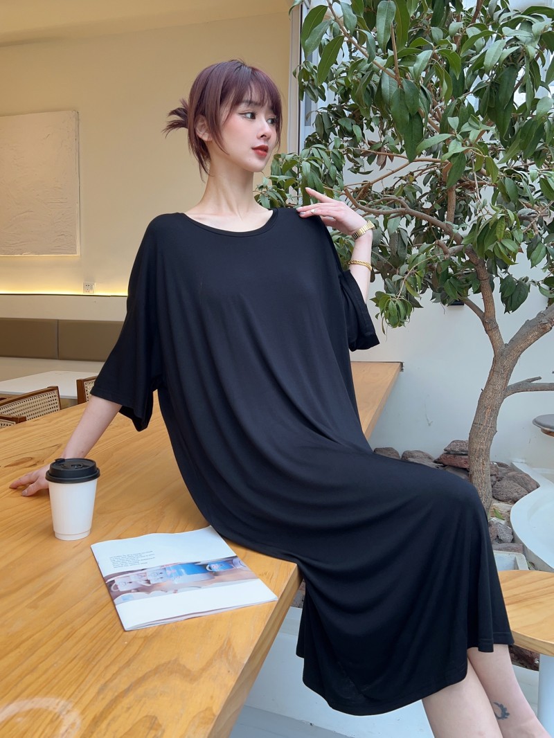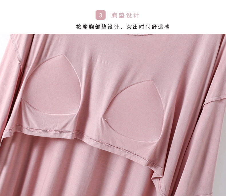 모달 파자마 여성의 봄과 가을 가슴 패드 반소매 고급 감각 임산부 나이트가운 순수한 욕망 스타일 홈 의류 원피스