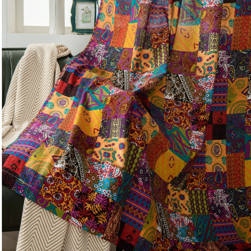 르 Xuan 쇼 홈스테이 커튼 보헤미안 에스닉 코튼 린넨 커튼 컬러 퍼즐 레트로 플로팅 커튼 도매