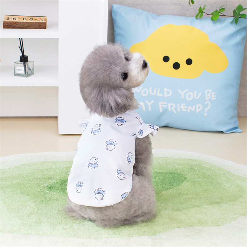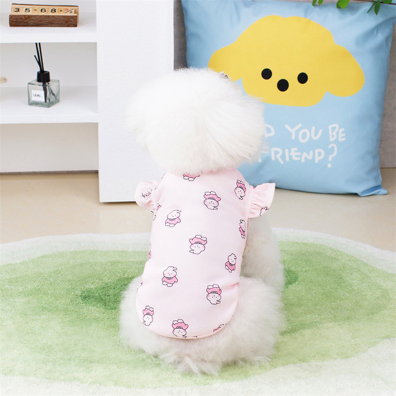 작은 개 봄과 여름 홈 캐주얼 귀여운 토끼 인쇄 비행 슬리브 크로스 보더 스트레이트 헤어 23 새로운 개 의류