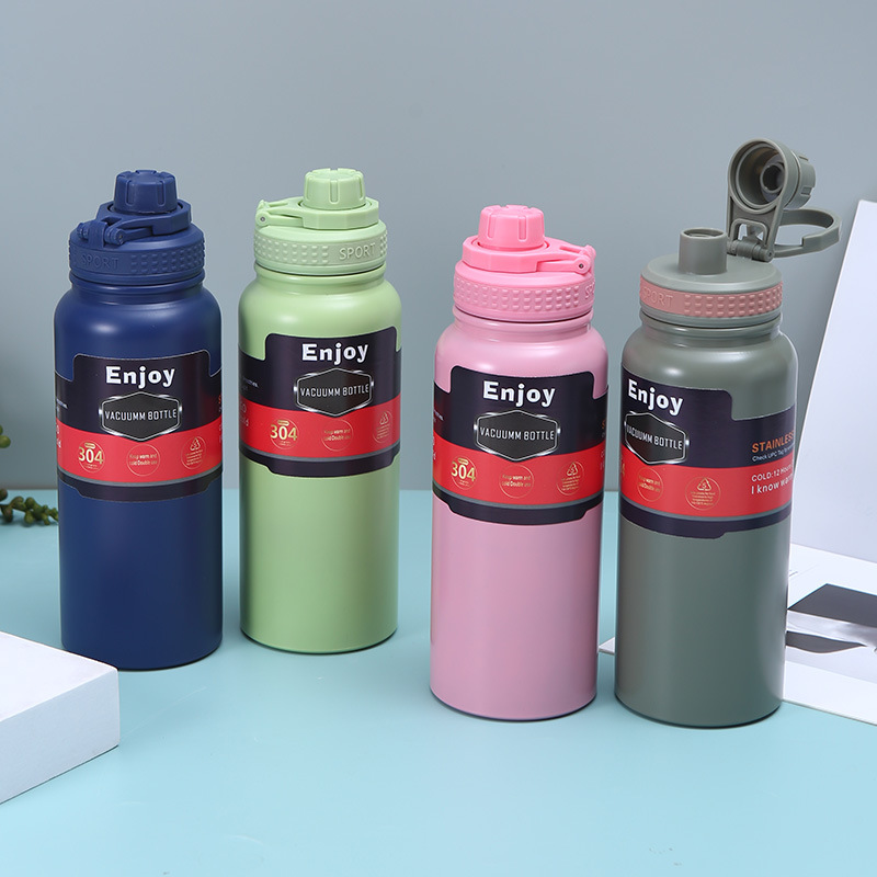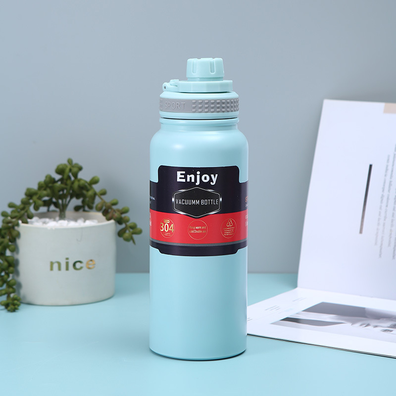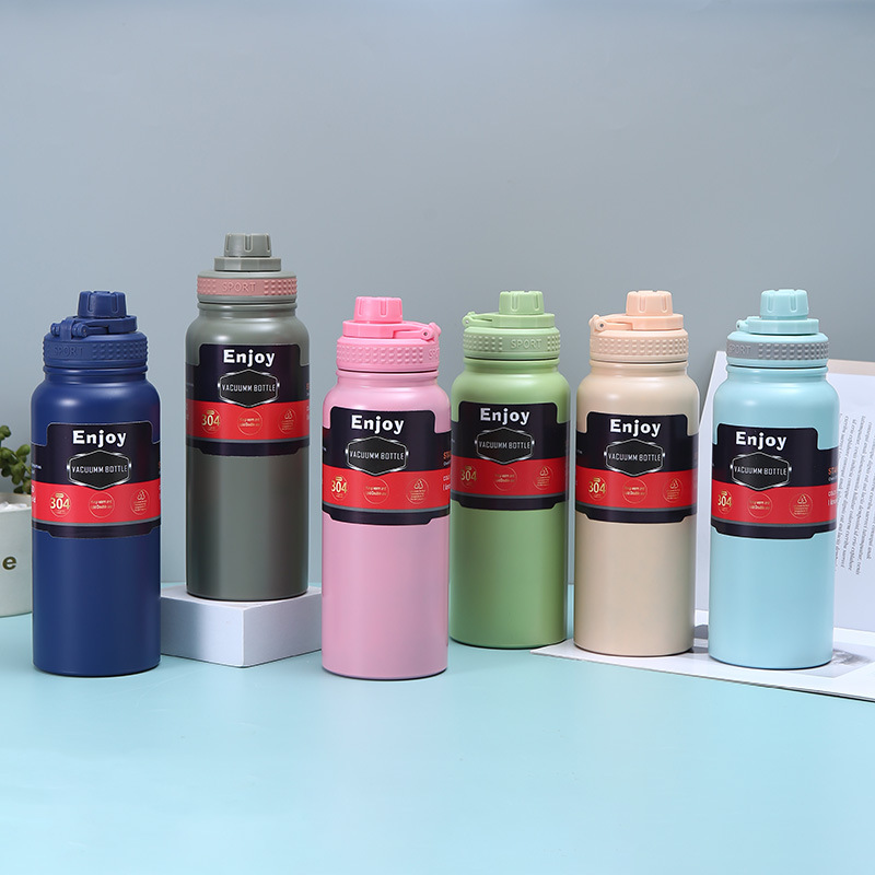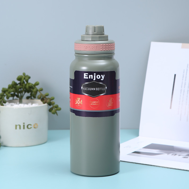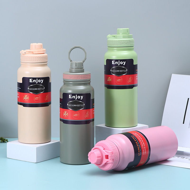 휴대용 304 스테인레스 스틸 보온병 야외 피트니스 스포츠 물병 손잡이 플라스틱 스프레이 이중층 진공 등산 냄비
