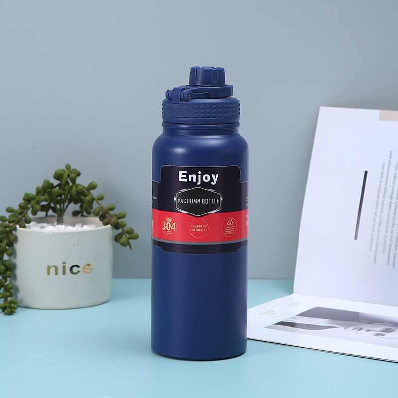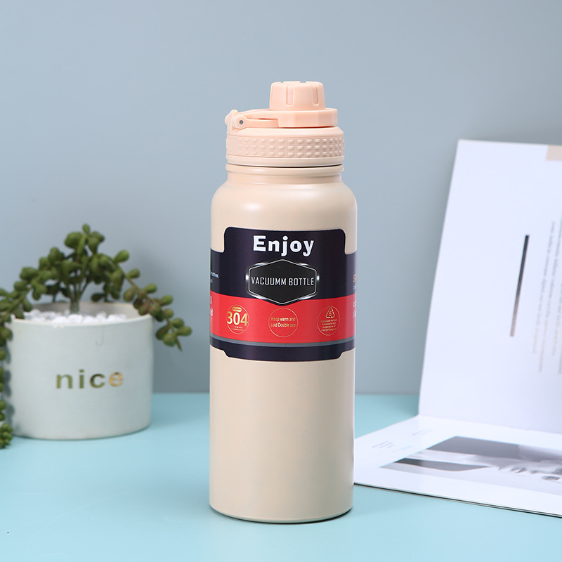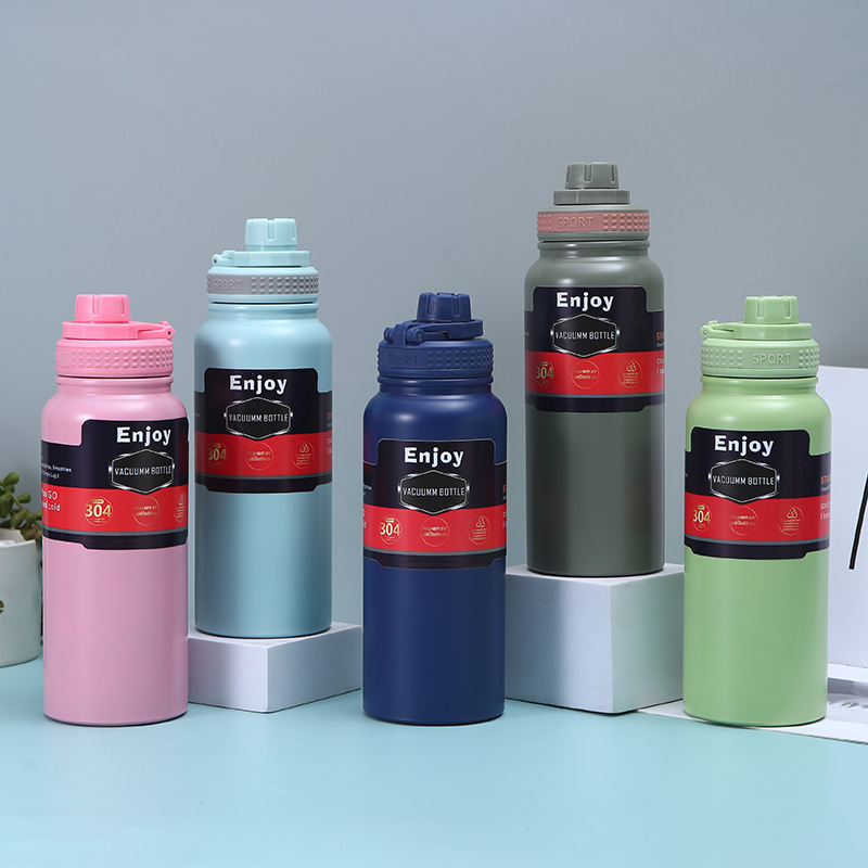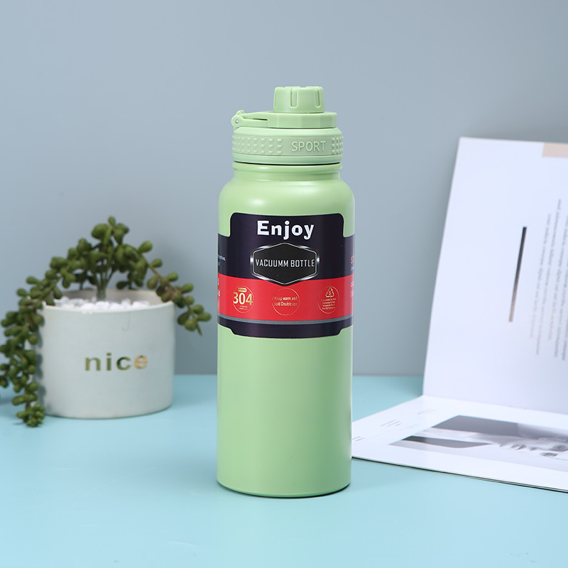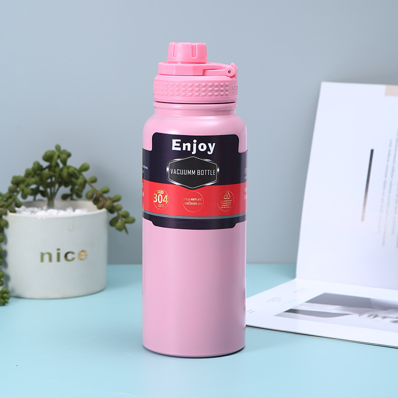 휴대용 304 스테인레스 스틸 보온병 야외 피트니스 스포츠 물병 손잡이 플라스틱 스프레이 이중층 진공 등산 냄비