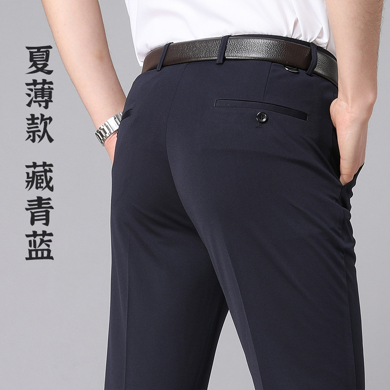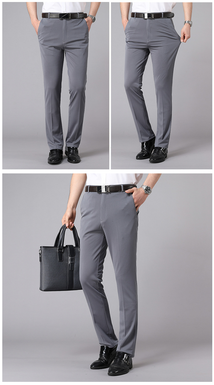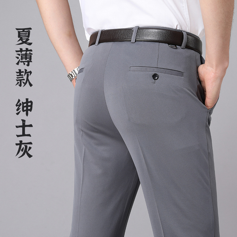 봄과 여름 바지 남성용 스트레치 스트레이트 슬림핏 세트 팬츠 남성용 얇은 비즈니스 남성 캐주얼 롱 팬츠