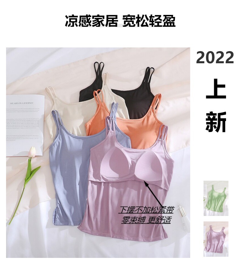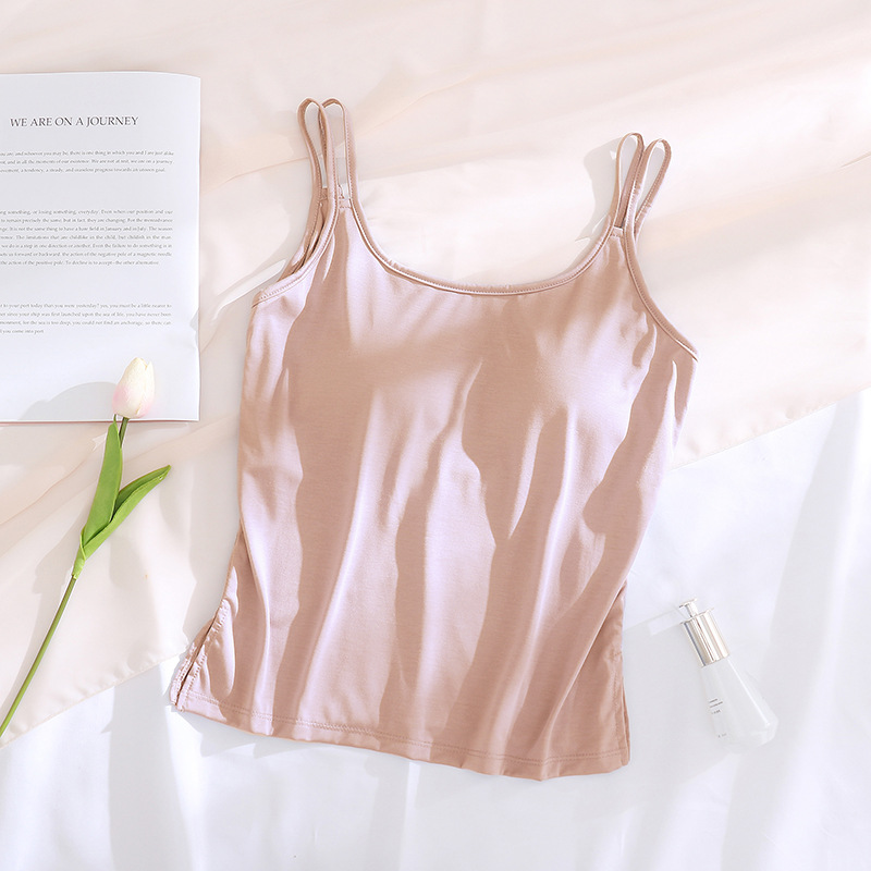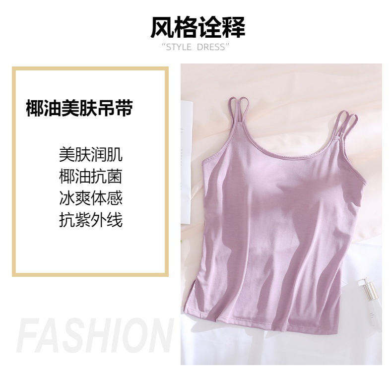 코코넛 오일 스킨 뷰티 가슴 패드 캐미솔 아세테이트 실크 부드러운 면베이스 컵 통합 느슨한 얇은 홈 웨어
