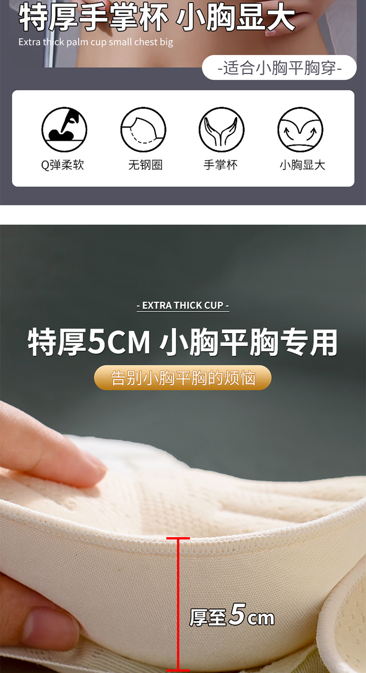 두꺼운 5cm 손바닥 컵 수집 작은 가슴 큰 플랫 가슴 비자기 스틸 링 보조 유방에 무너지는 여성 속옷스토어 가기