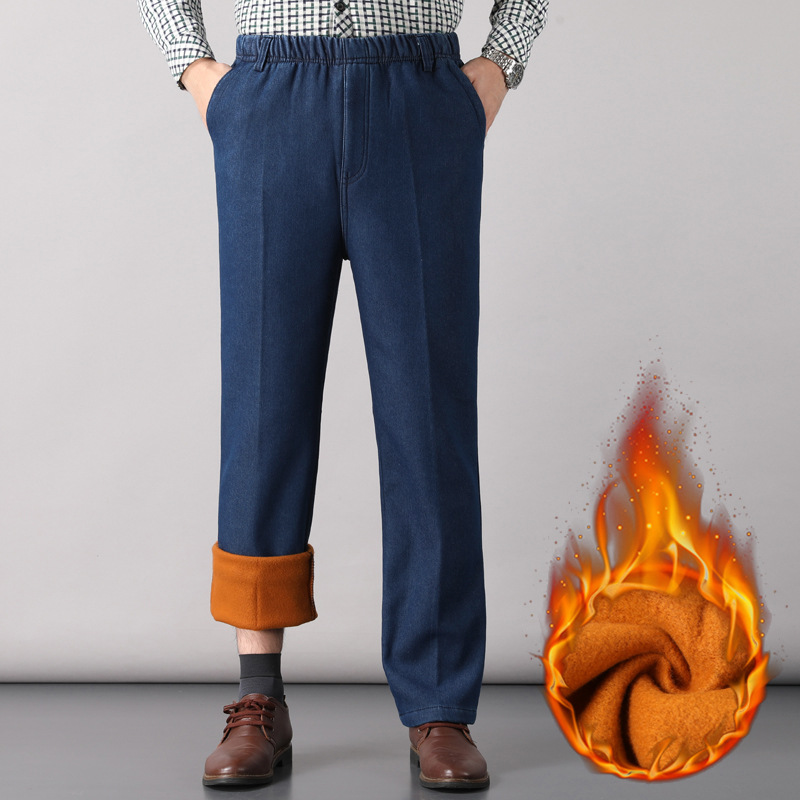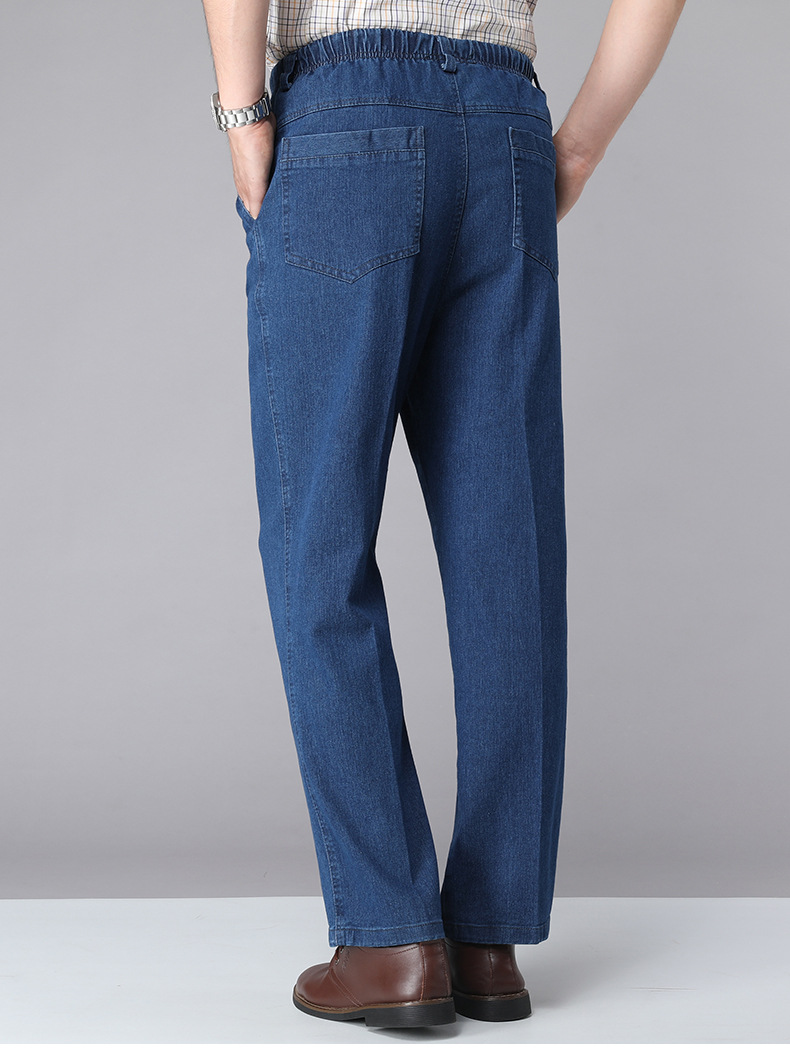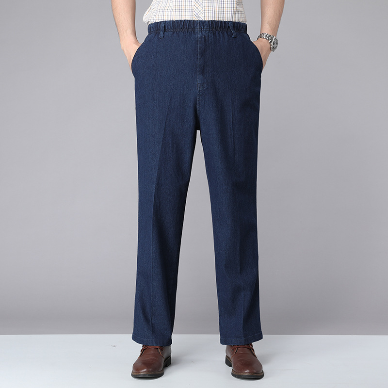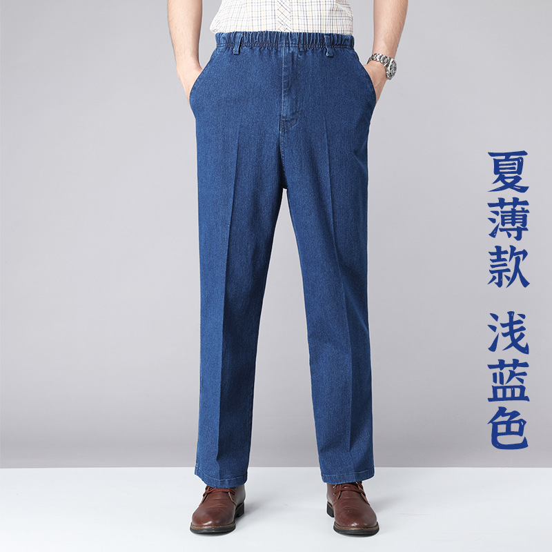 봄 탄성 허리 남자의 청바지 스트레치 두꺼운 작업복 바지 남자의 느슨한 플러스 사이즈 중년 캐주얼 남자의 바지