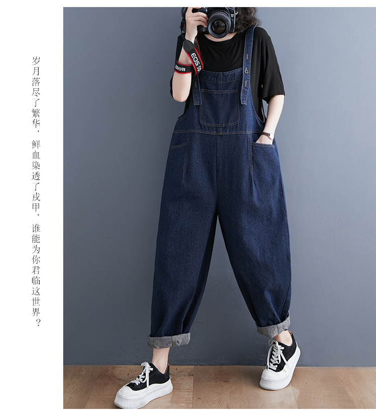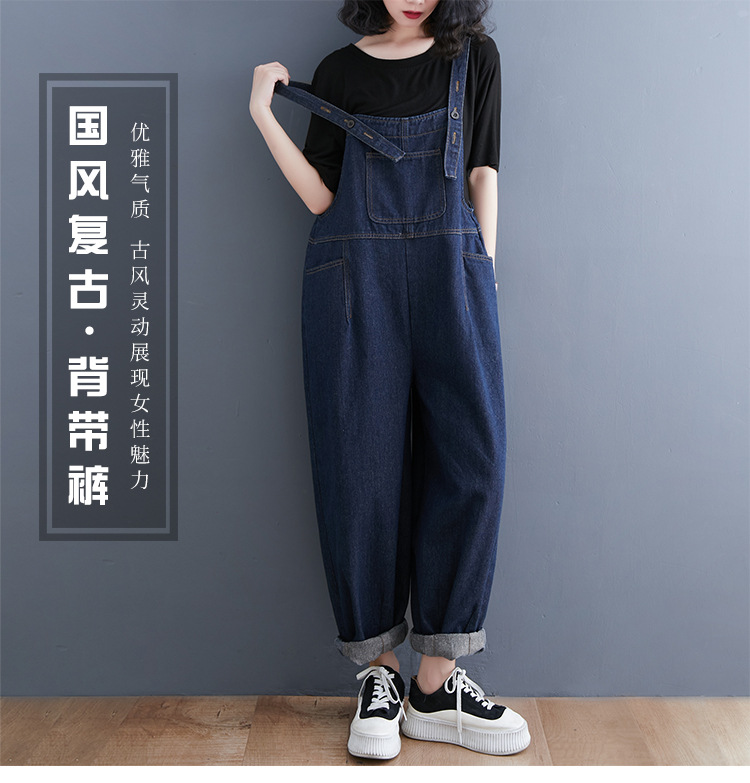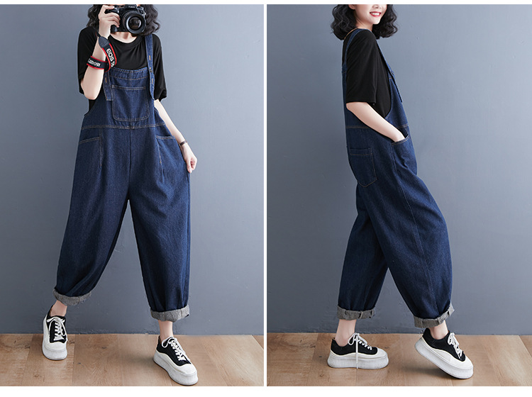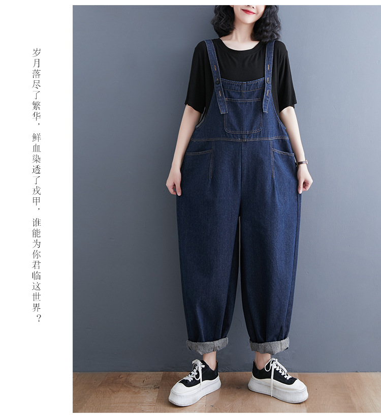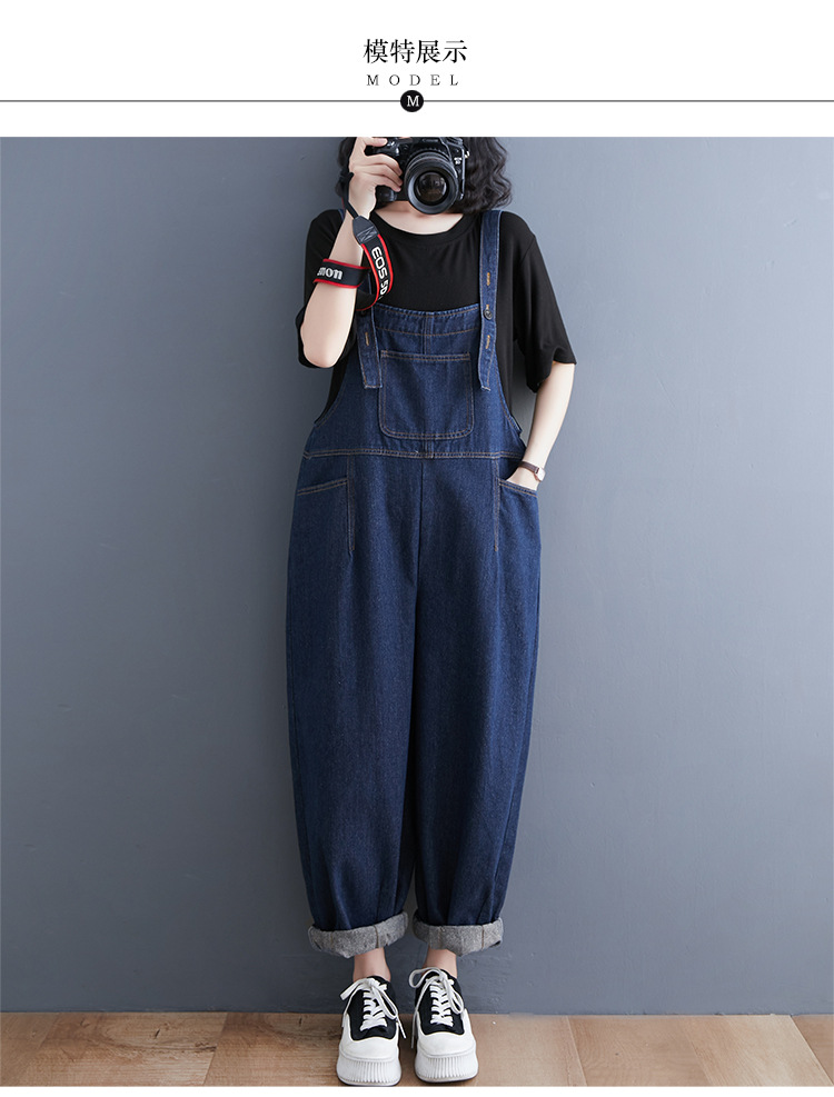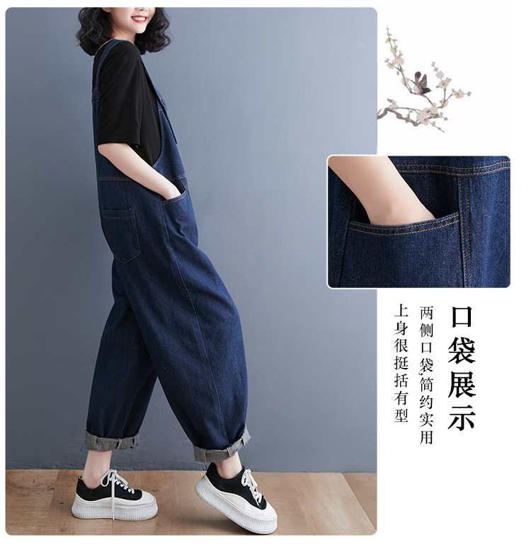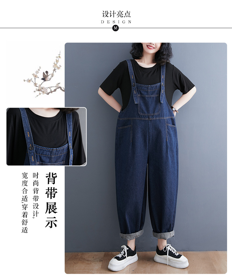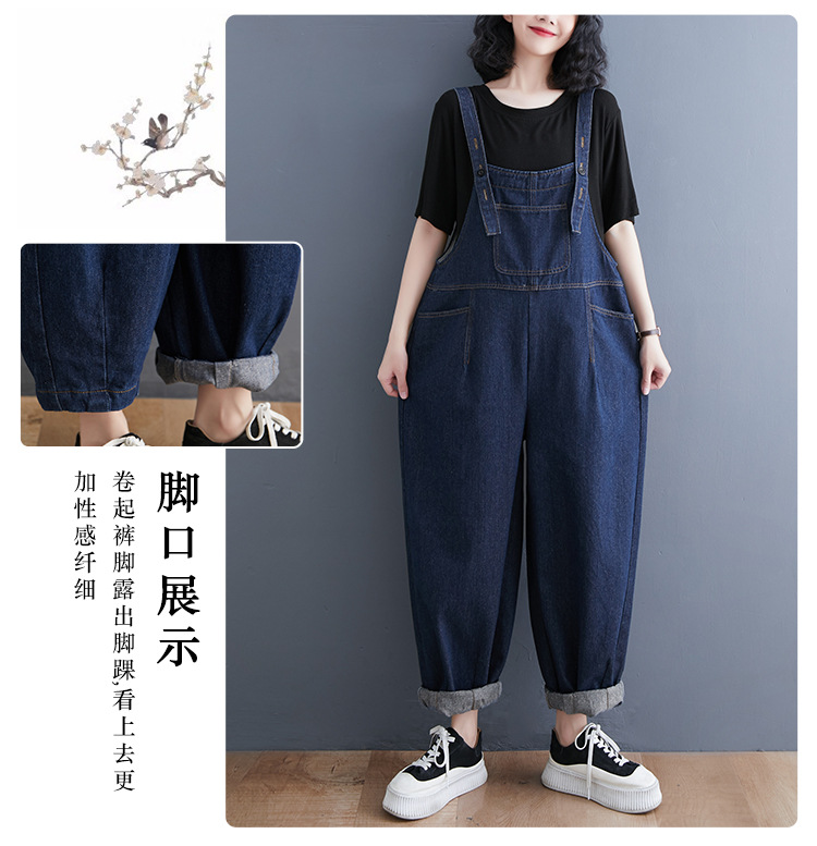 2023 봄과 여름 새로운 여성 플러스 사이즈 느슨한 모든 경기 멜빵 스트랩 데님 점프 슈트 여성 할란 바지