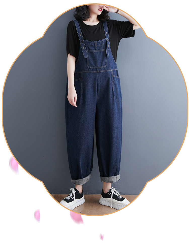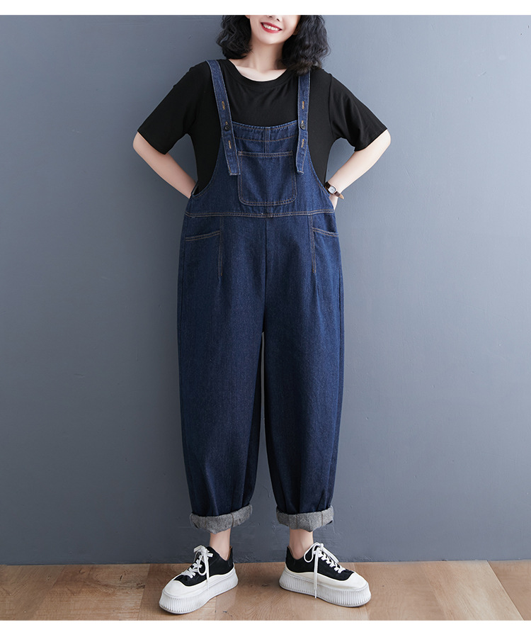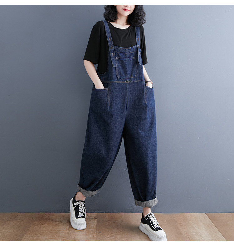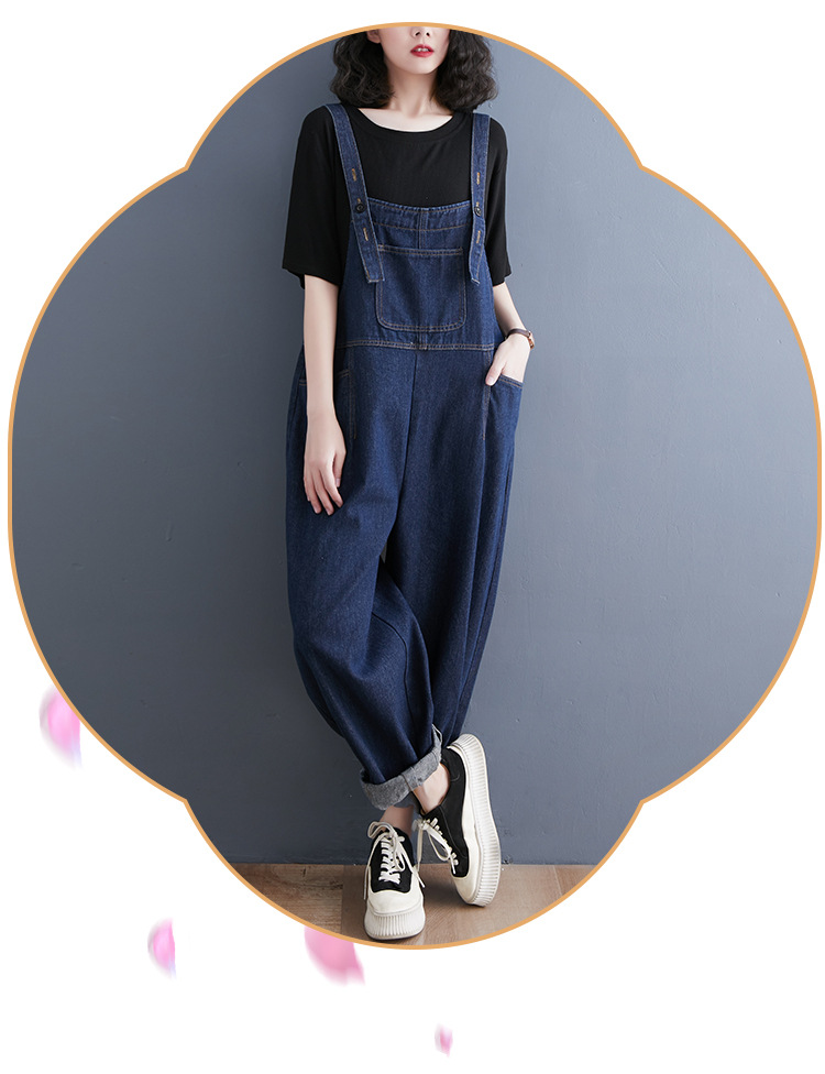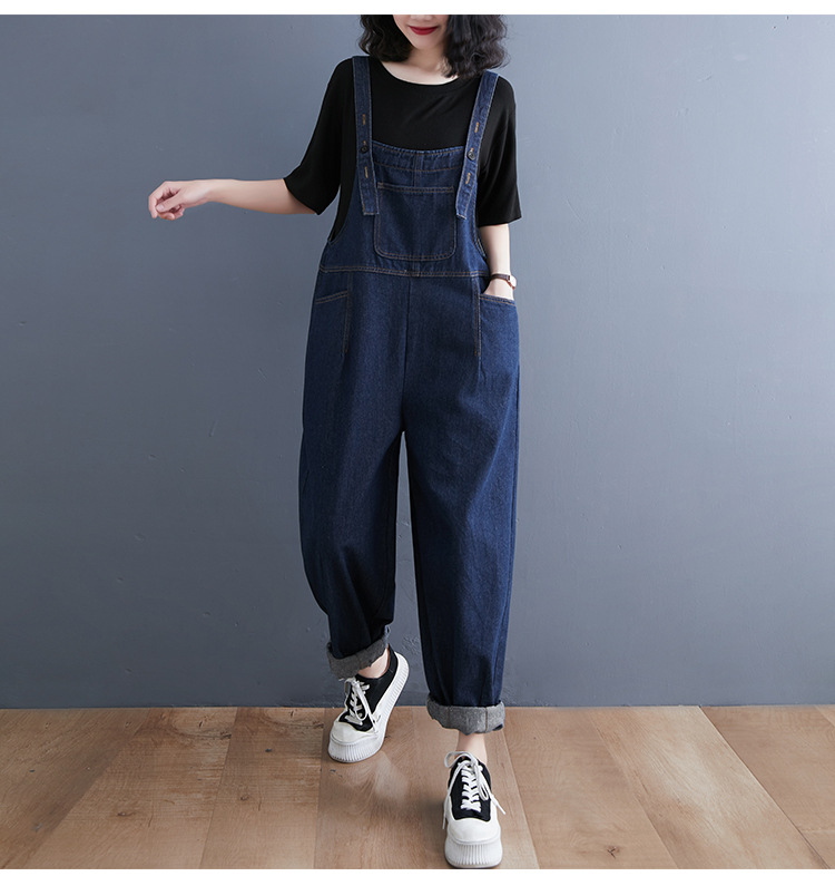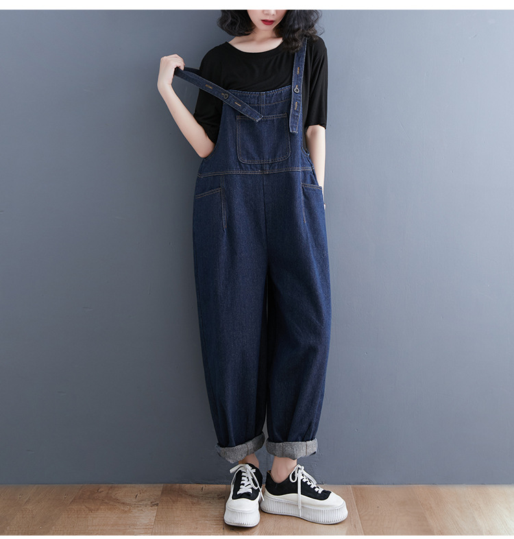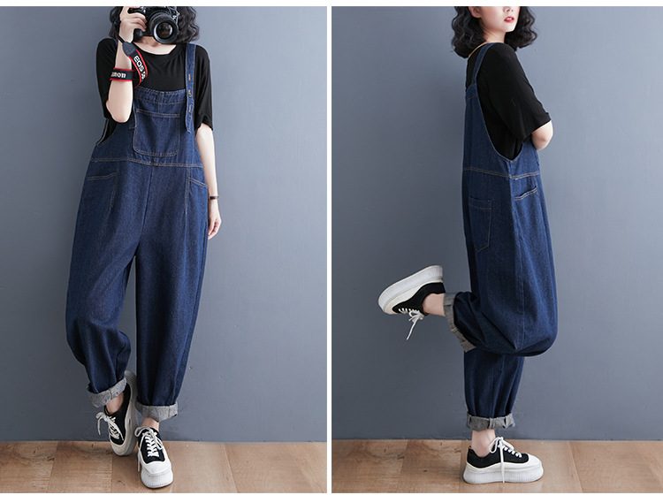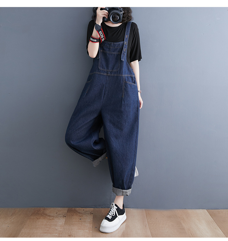 2023 봄과 여름 새로운 여성 플러스 사이즈 느슨한 모든 경기 멜빵 스트랩 데님 점프 슈트 여성 할란 바지