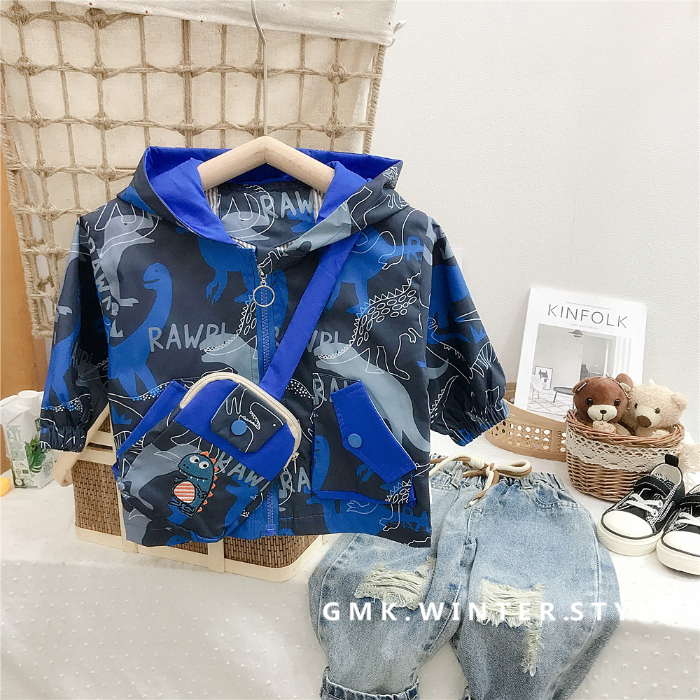어린이 소년 봄 가을 코트 2023 새로운 서양 스타일 소년 한국 스타일 봄 옷 트렌치 코트 배달 가방