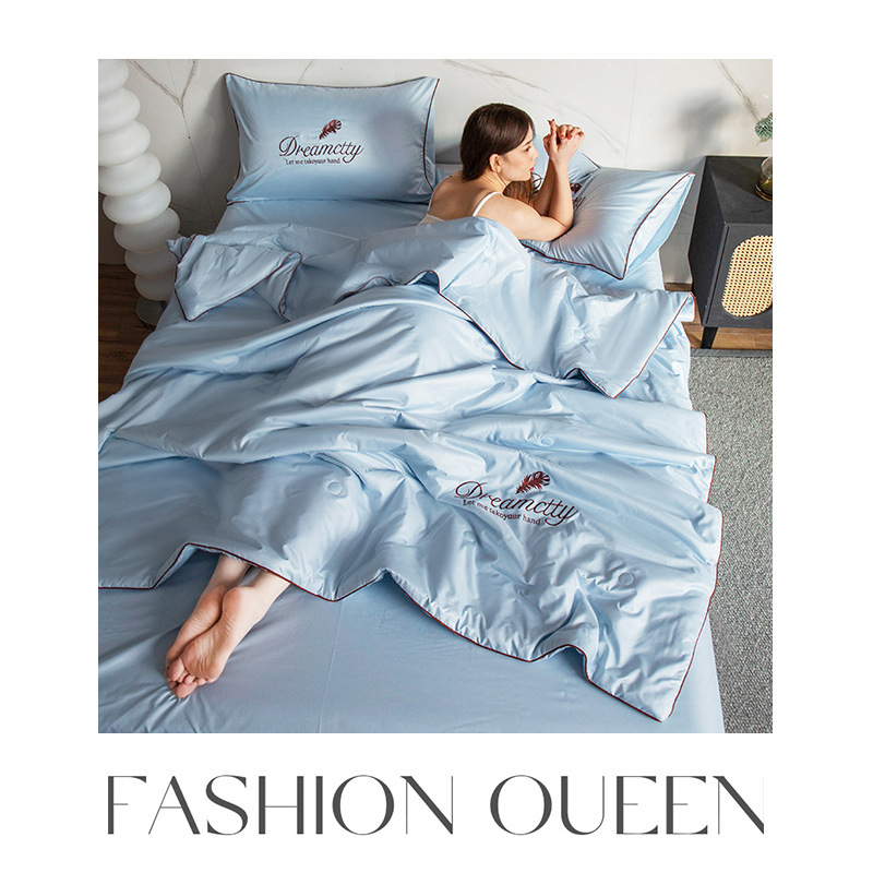 2023 여름 새 워싱 아이스 실크 텐트 에어컨 여름 쿨 이불 싱글 여름 이불 싱글 침대 모자 4 피스 선물 이불스토어 가기