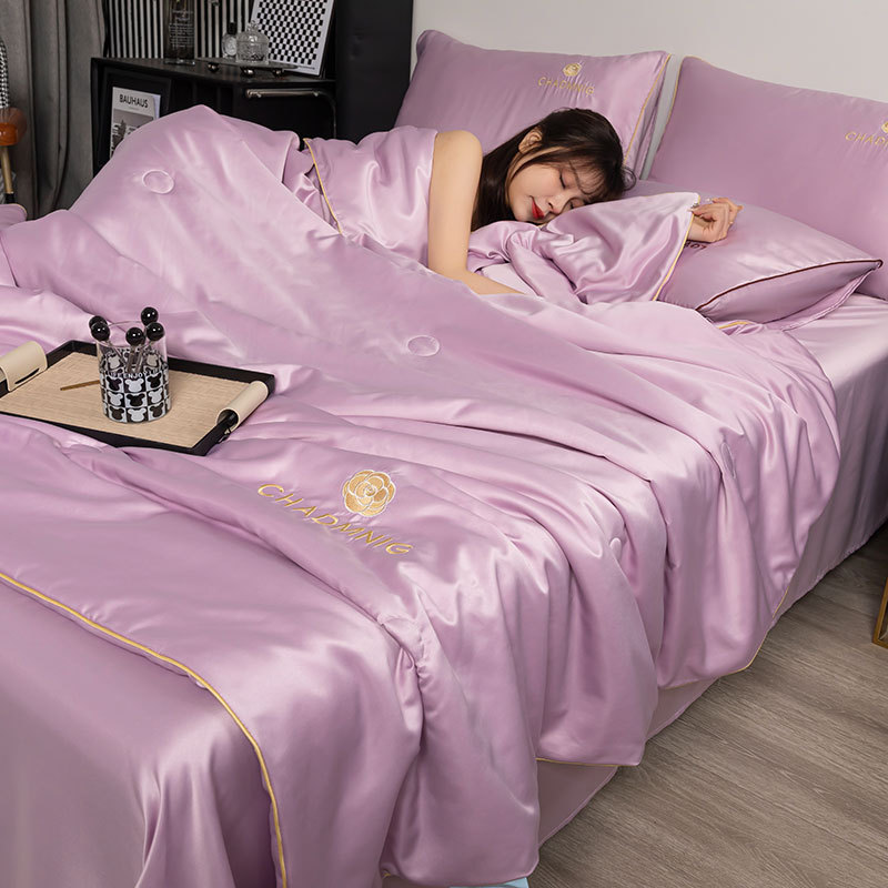 2023 여름 새 워싱 아이스 실크 텐트 에어컨 여름 쿨 이불 싱글 여름 이불 싱글 침대 모자 4 피스 선물 이불