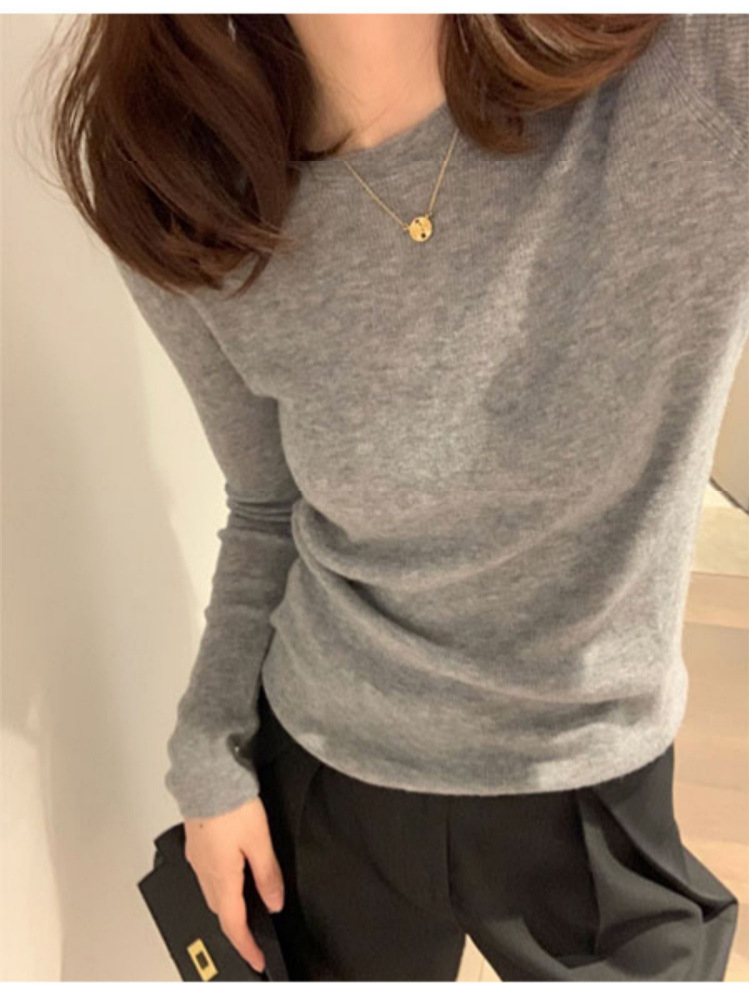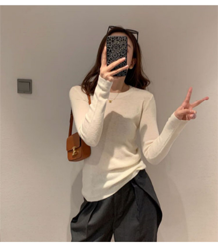 Wrested Wool Base 셔츠 한국식 슬림핏 슬리밍 탑 넥 올 매치 풀오버 얇은 스웨터 여성용스토어 가기