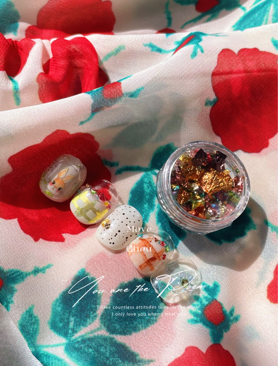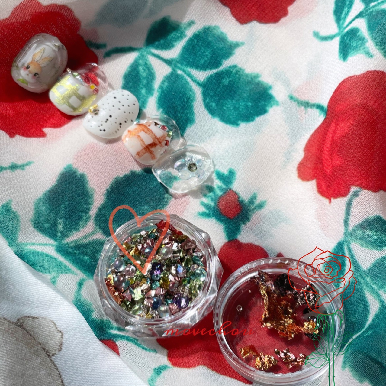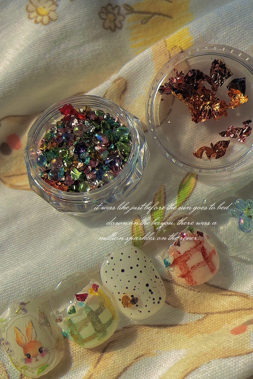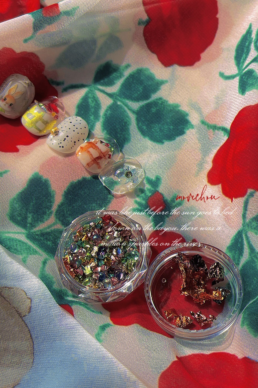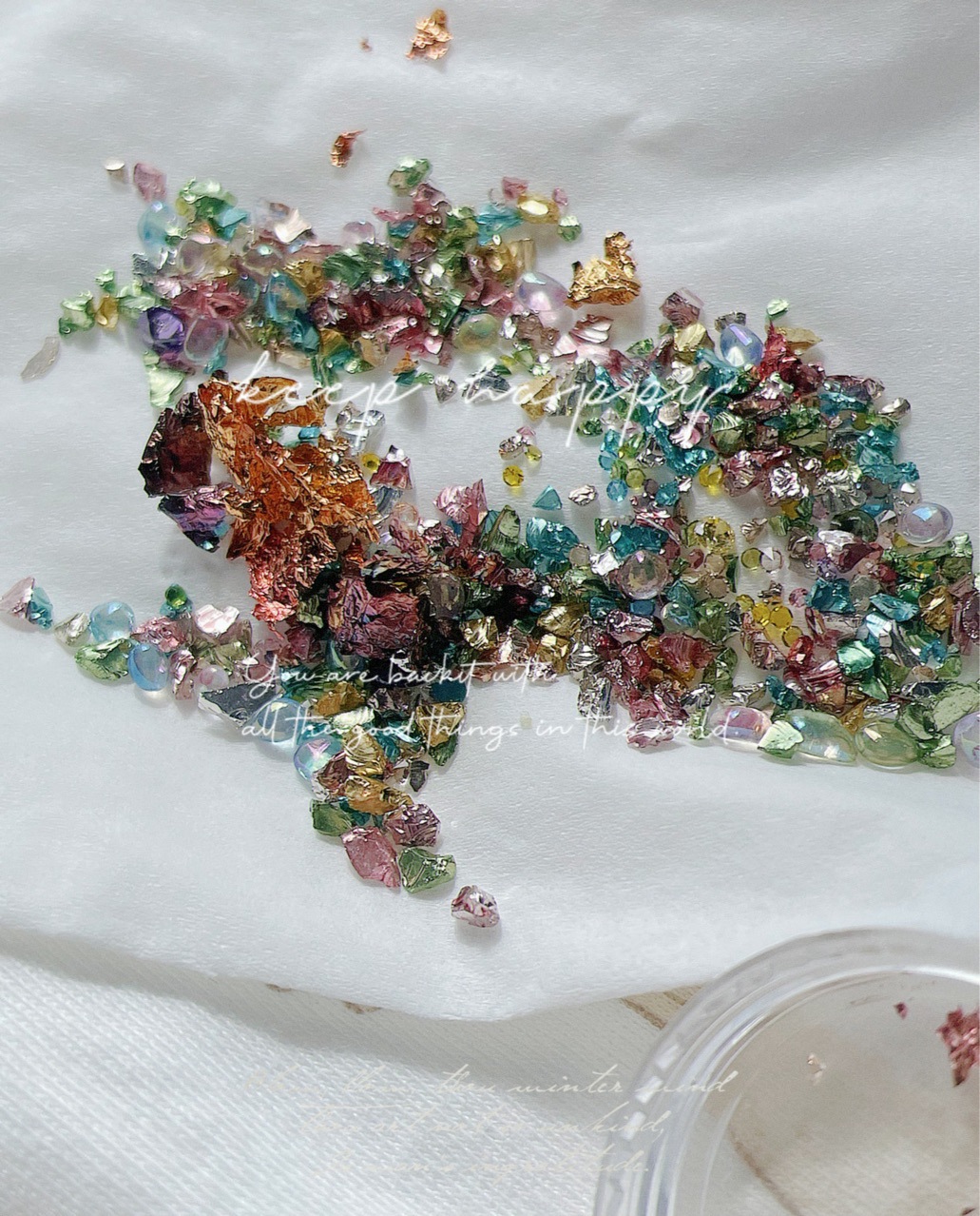 일본과 한국의 새로운 빈티지 보석 네일 아트 혼합 네일 아트 쥬얼리 구슬 자갈 골드 호일 깨진 다이아몬드 유리 구슬