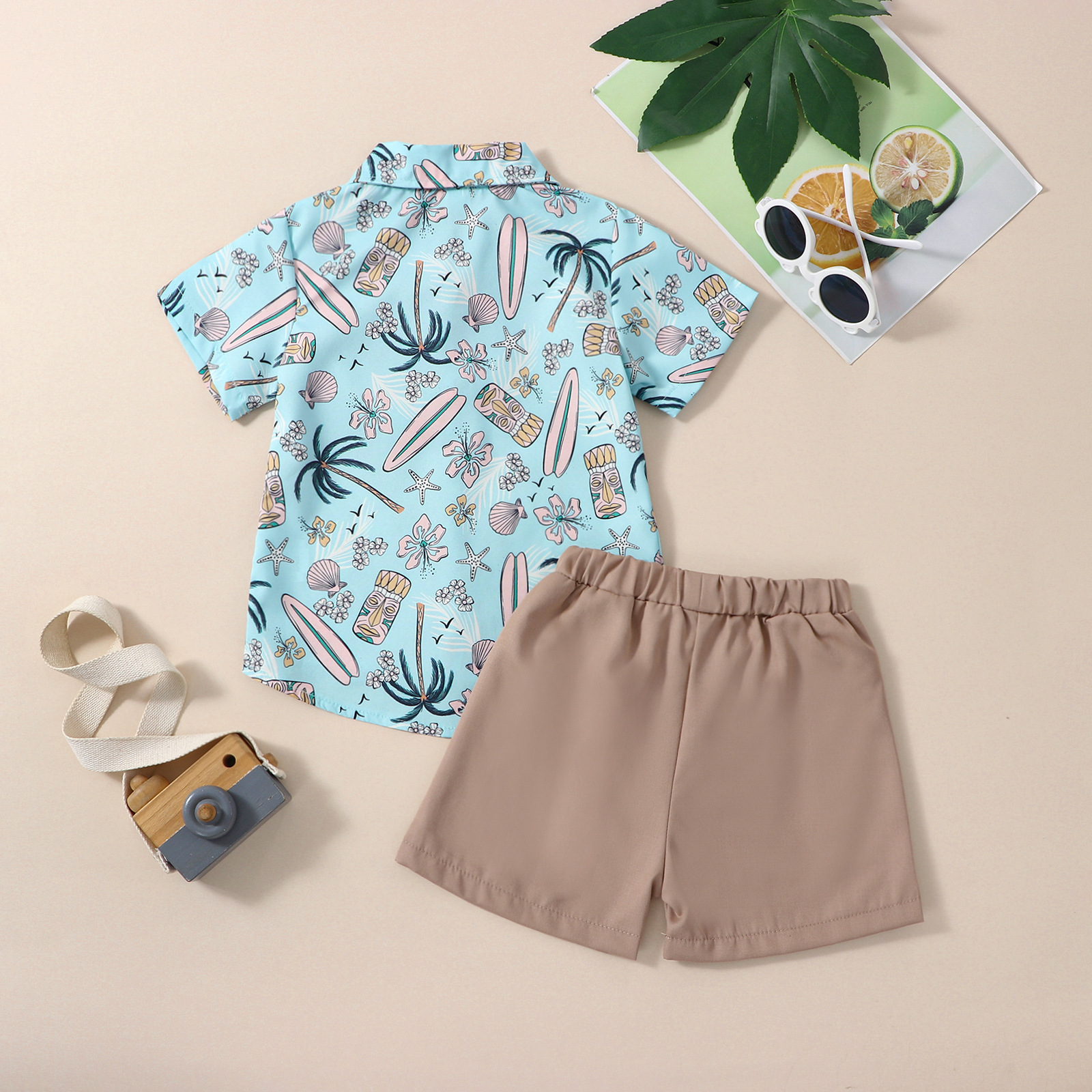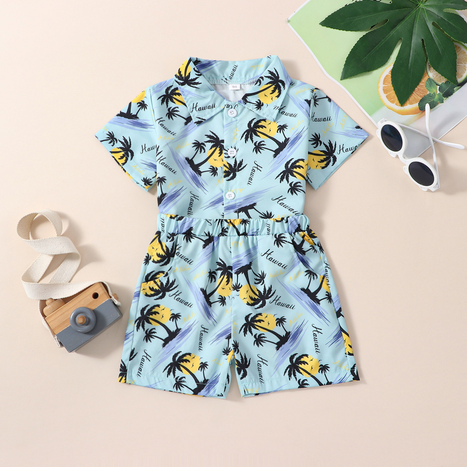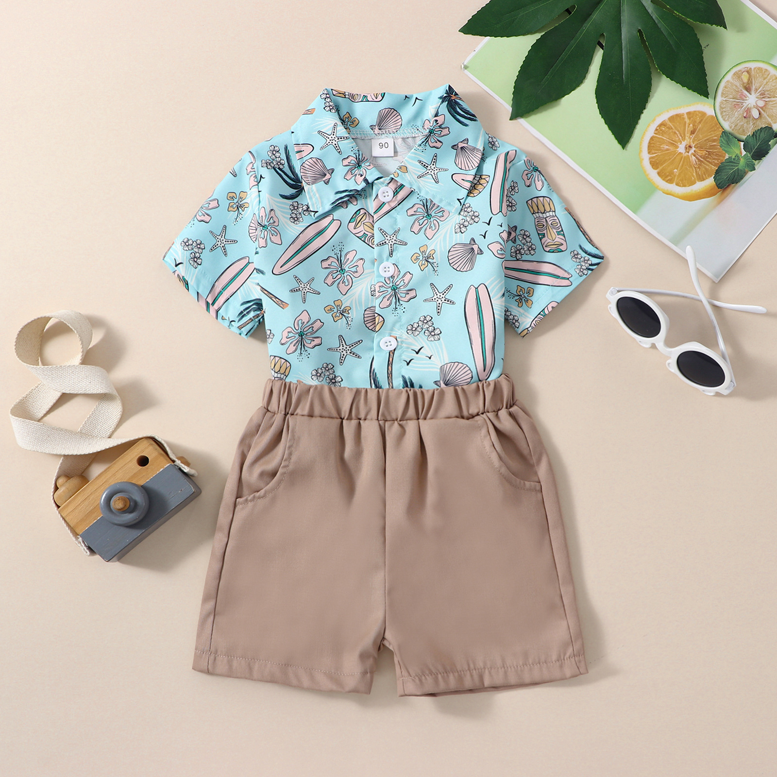 유럽과 미국 소년 여름 해변 하와이안 휴가 세트 어린이 인쇄 어린이 셔츠 바지 세트 재고스토어 가기