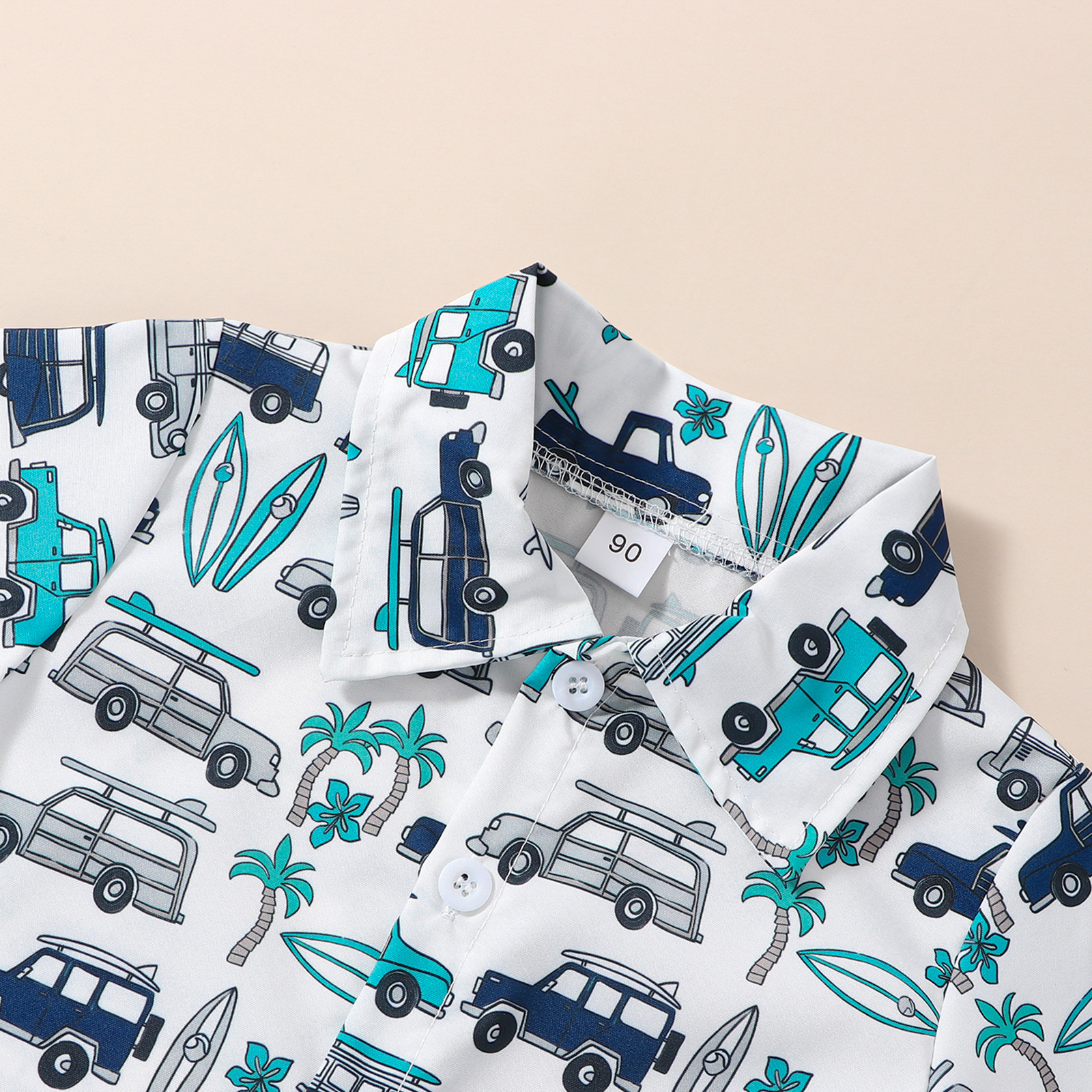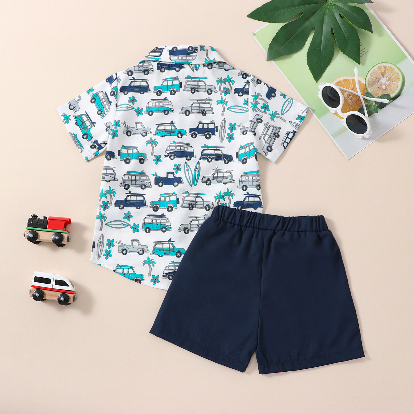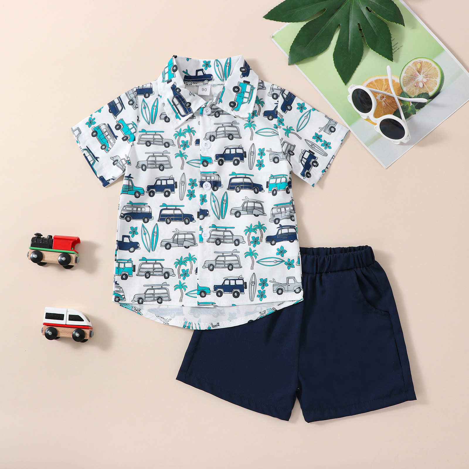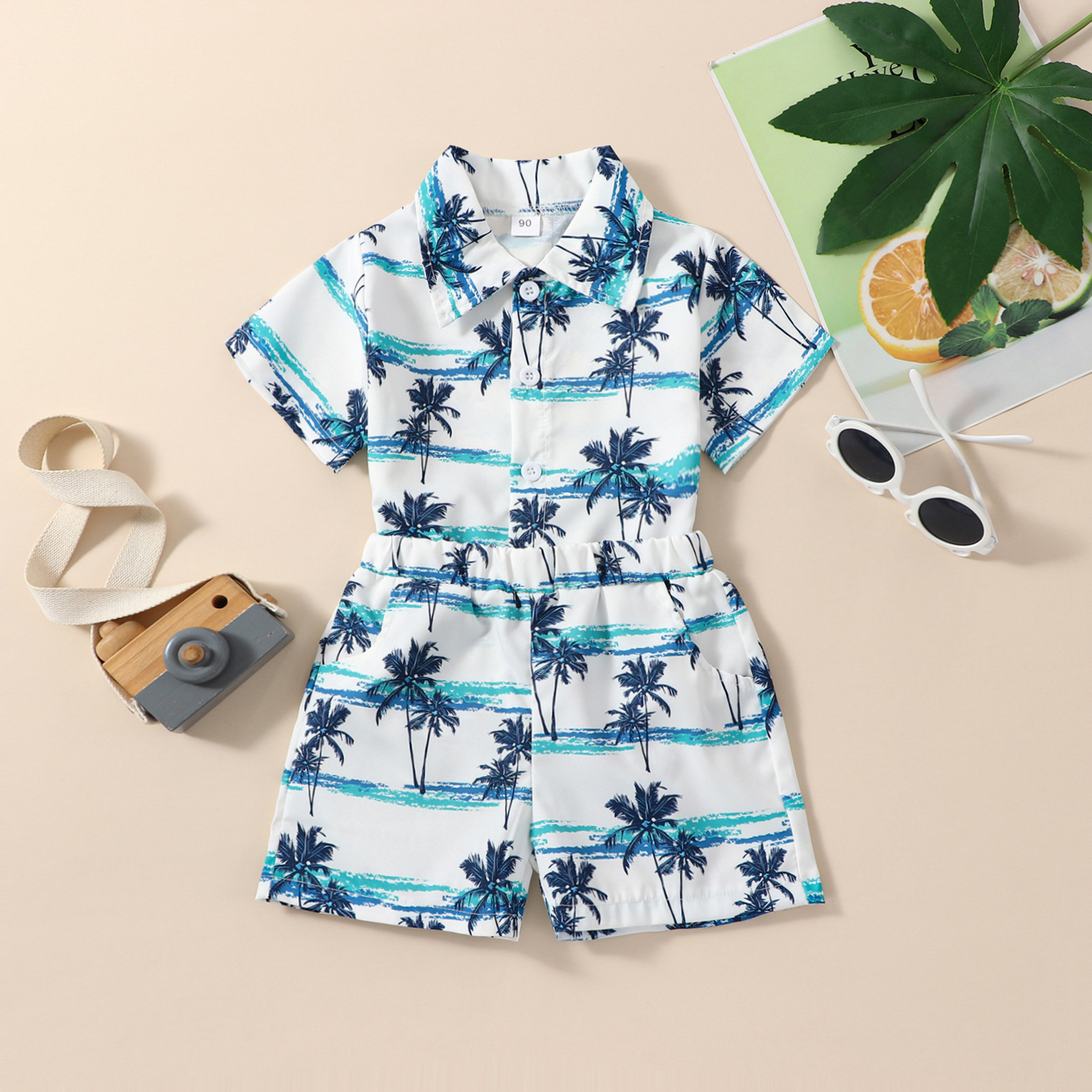 유럽과 미국 소년 여름 해변 하와이안 휴가 세트 어린이 인쇄 어린이 셔츠 바지 세트 재고스토어 가기