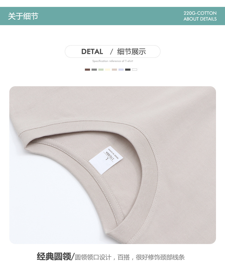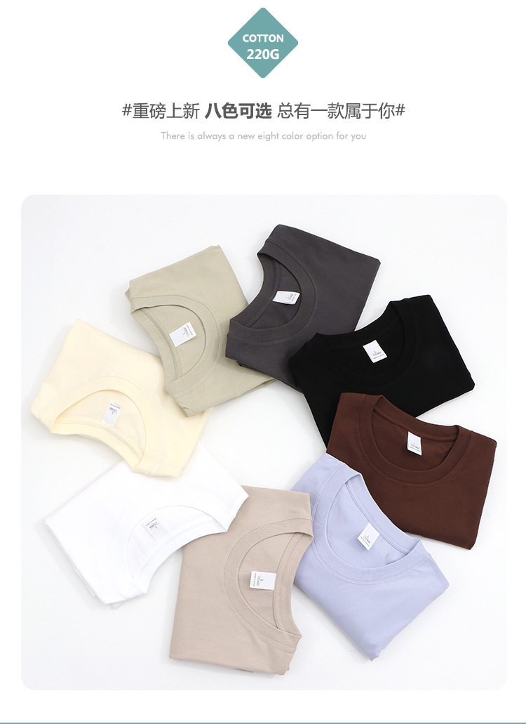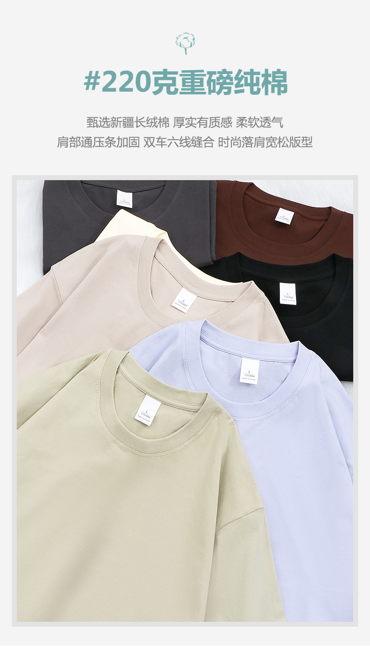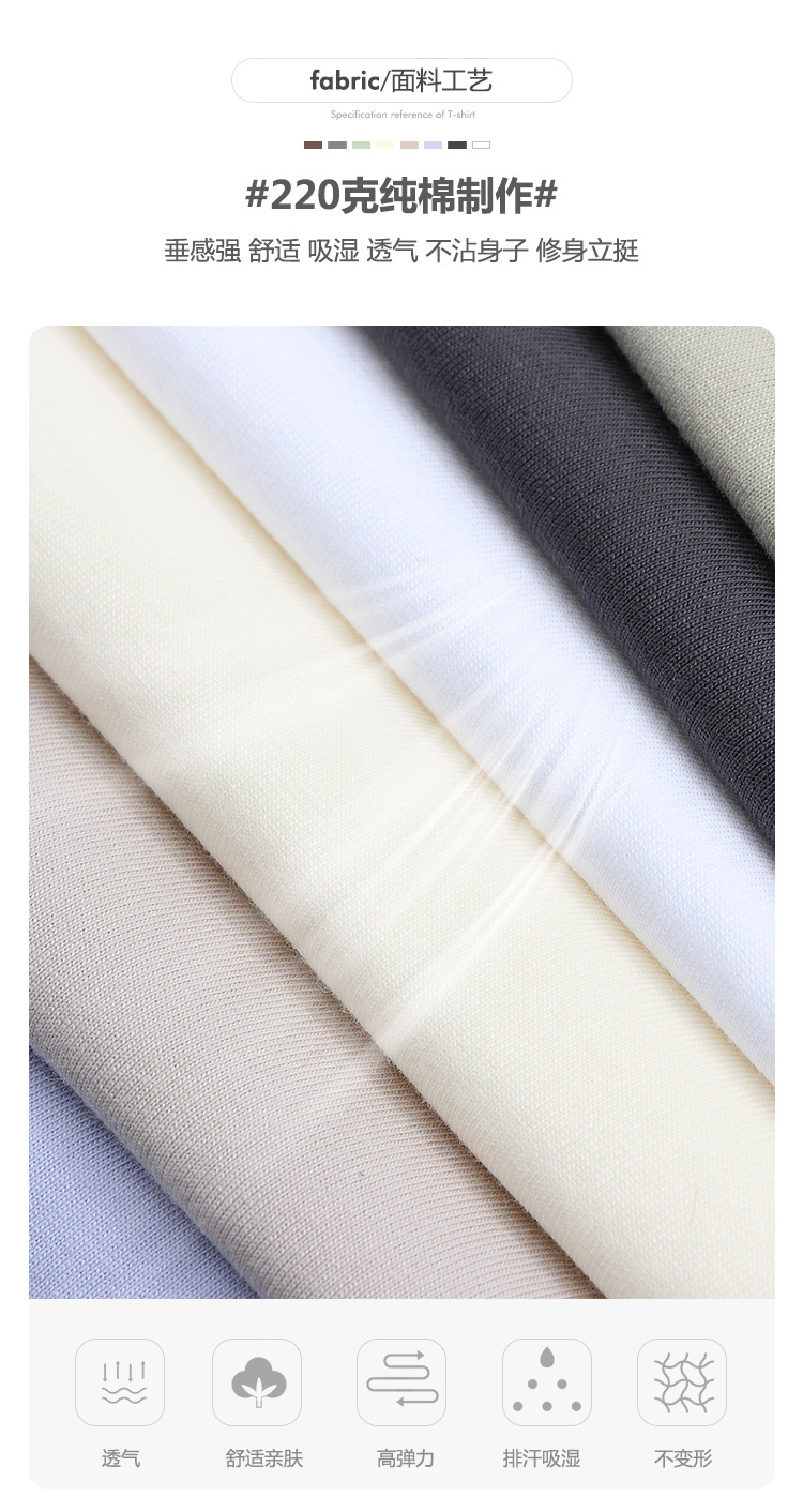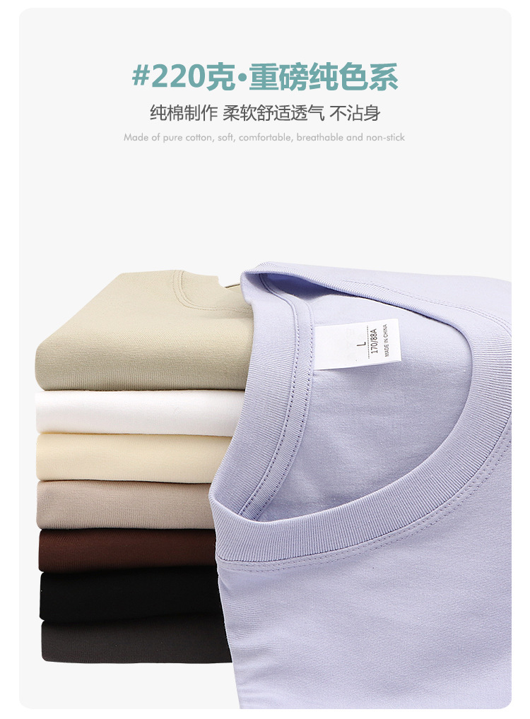 여름용 220g 순면 남성 반팔 유럽 스타일 루즈핏 라운드넥 기본 티셔츠 캐주얼 스포츠 상의