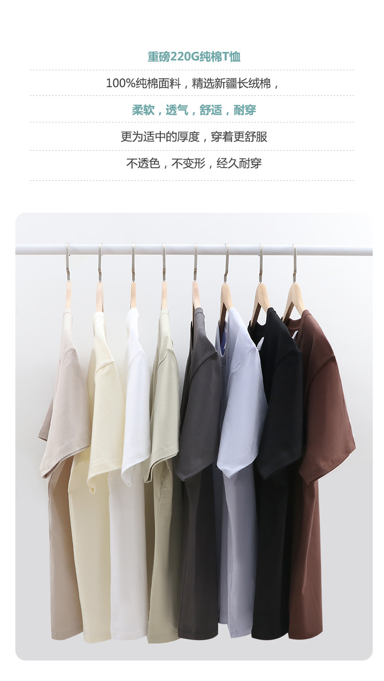 여름용 220g 순면 남성 반팔 유럽 스타일 루즈핏 라운드넥 기본 티셔츠 캐주얼 스포츠 상의스토어 가기