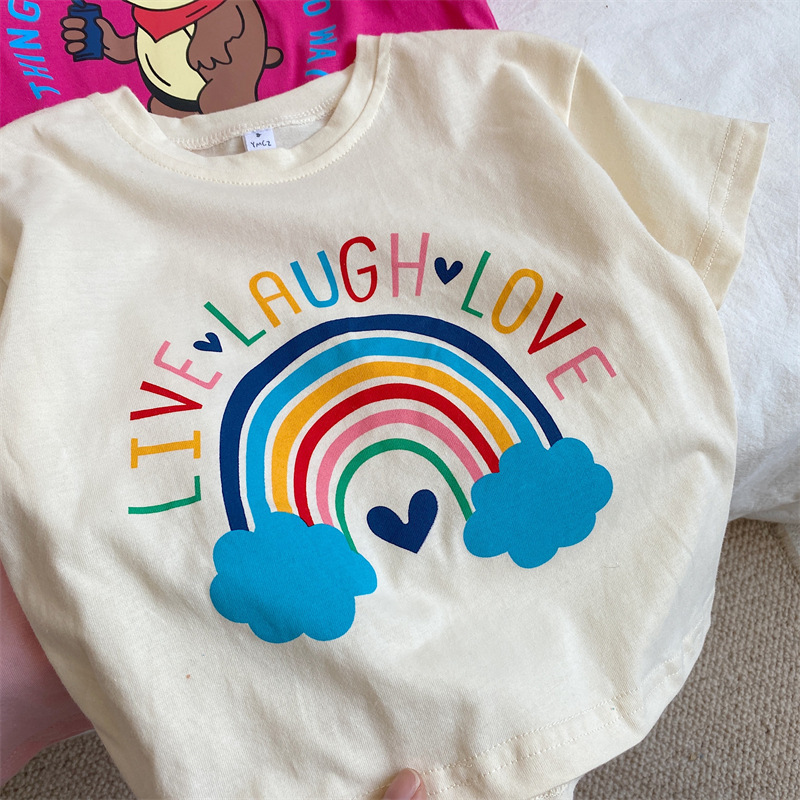 한국 아동복 아동 아기 서양식 만화 반팔 티셔츠 탑 2023 여름 새로운 어린 소녀 면 T 조수