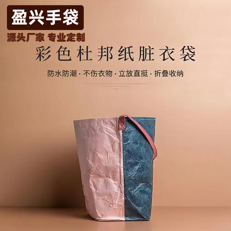 맞춤형 듀퐁 종이 휴대용 더러운 옷 바구니 북유럽 가정 용품 보관 바구니 크래프트 종이 접는 어깨 보관